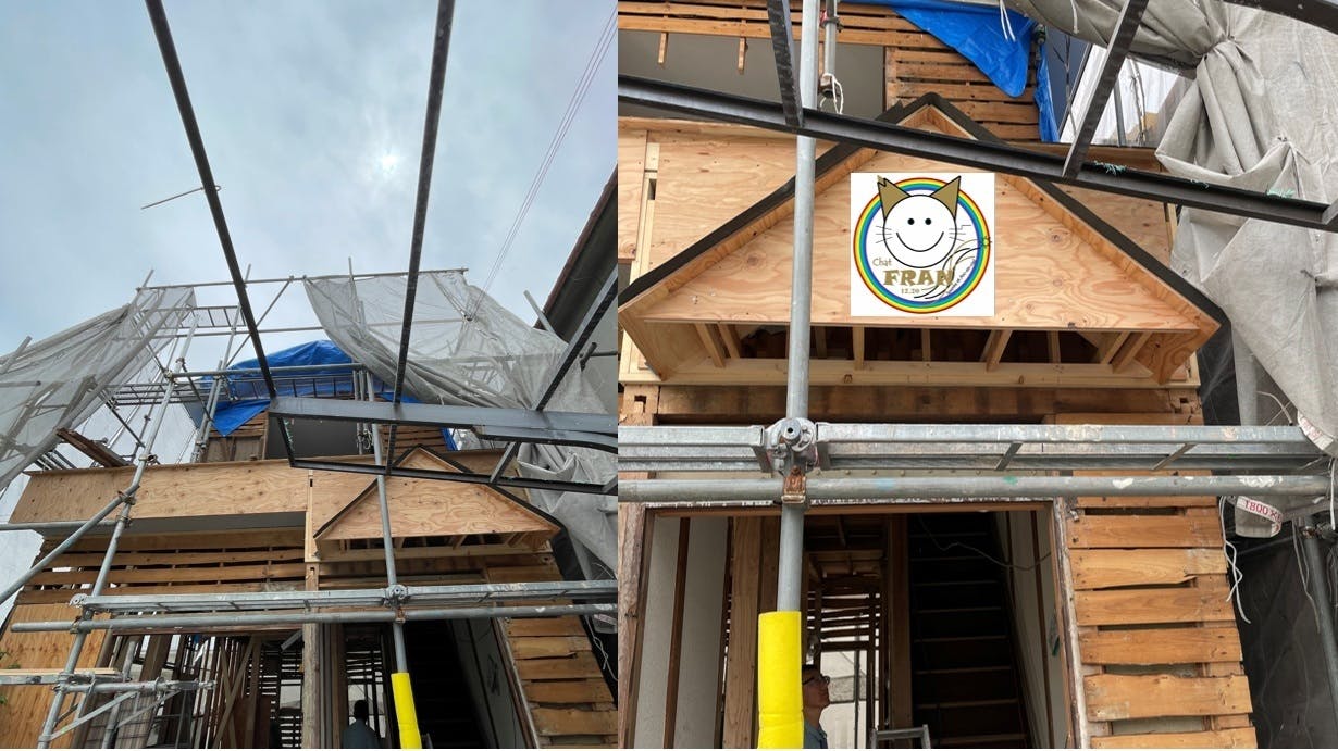 その代わりに正面玄関上に猫専用のデッキをつくる予定です。