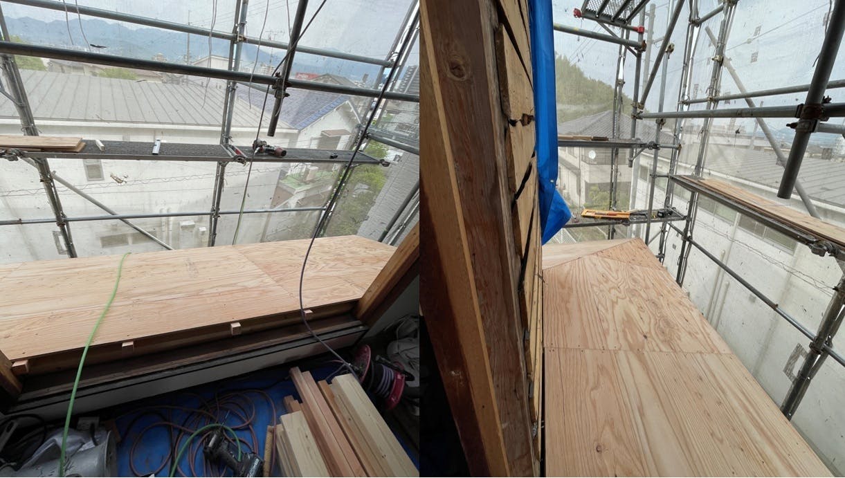 正面と裏口上の屋根です。新品になりました。