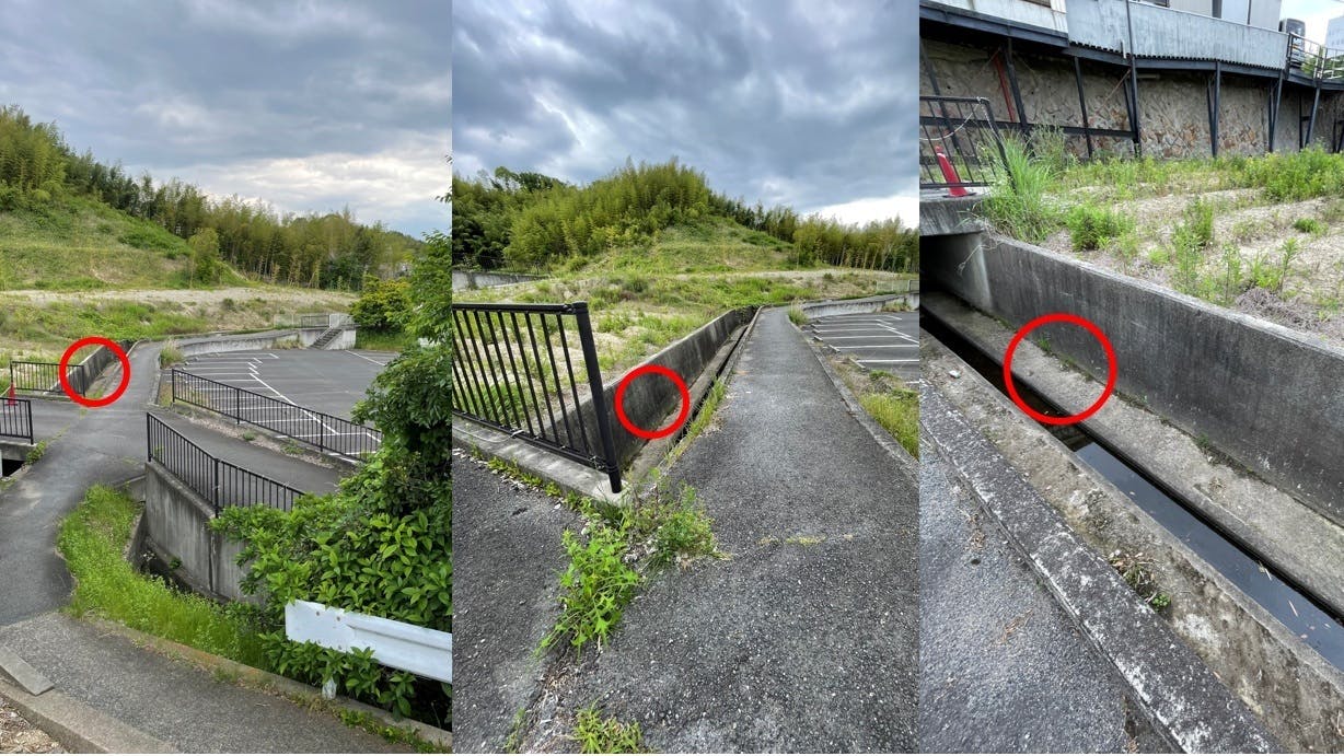 フランや天国にいった子たちがいるお墓の下の側溝。奇跡的に母は助かりました。