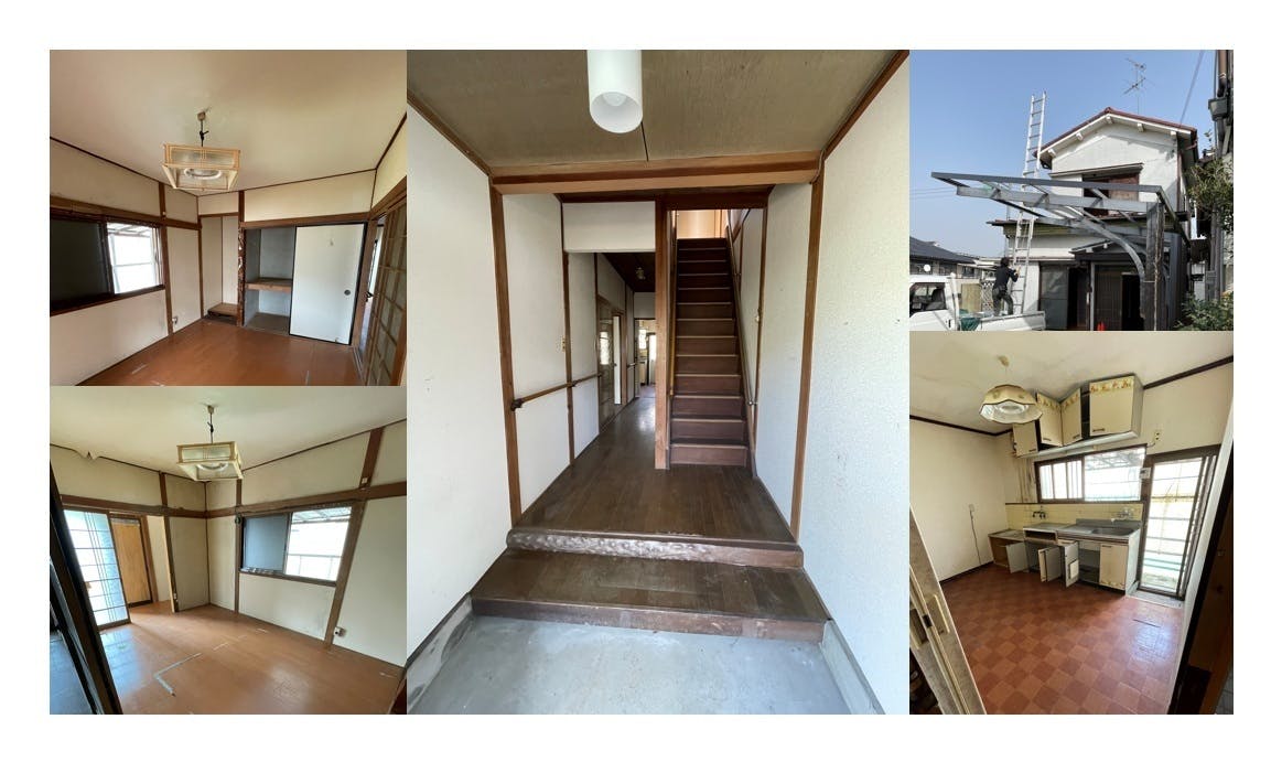 この物件は、木造2階建です。築55年。持ち主さんがリフォームをされていたので写真映りは良いかもしれません。1階部分は和室と水回り(キッチン・お風呂・洗面所・トイレ)。キッチンの床は一部抜け、水回りは、このままでは使用不可。壊滅的です。写真撮影する勇気がありませんでした。2階部分は洋間2室とベランダ。部屋は床と壁は、このまま使用できそうです。しかし、ベランダは修理が必要です。費用がかかるので無くすことにしました。費用を抑えるため窓がこのまま使用できたら良いと思っていますが厳しい状況です。昭和のなごりの木枠の窓もあります。