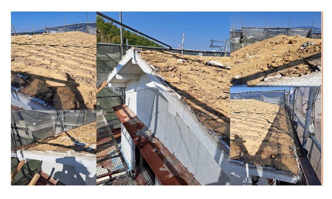 4月26日。瓦の撤去。工務店の方々はヘトヘトだったと思います。でも、屋根から見える景色が良いと褒めてくださいました。経済的に許すなら小さい展望室が欲しいです。経済的余裕なし。