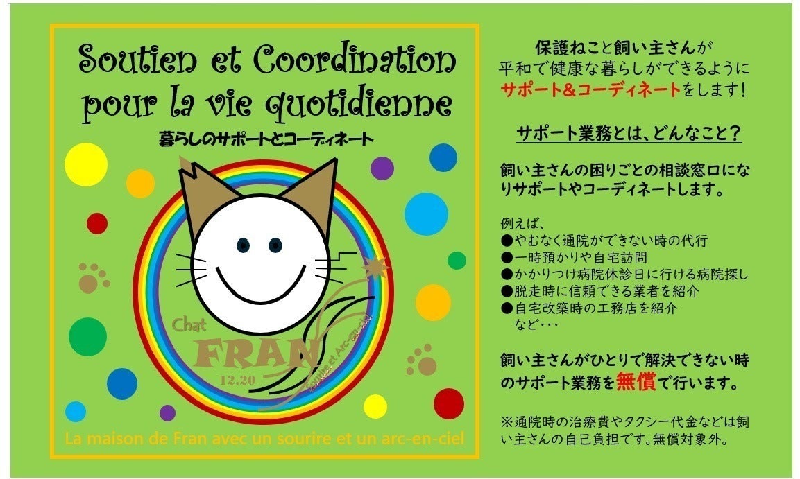 そんな中、昨年12月、愛猫フランが闘病の末、天国にいってしまいました。それを機に今まで以上に思いが強くなり、もっと多くの猫たちを救いたい、そして、猫たちと共に暮らす飼い主が安心して生活できるようにサポートしたいと考えるようになり、このプロジェクトを立ち上げました。
