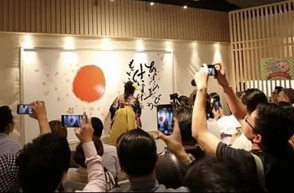 2015年 書道家デビューはシンガポールにあるラーメンけいすけ様にて壁にパフォーマンス。現在は場所を移動して継続展示されている。