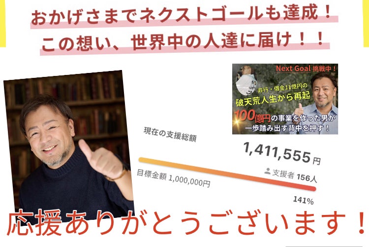 おかげさまで目標は達成したので、あとはできる限り多くの方々へ届けるために、可能性を切り拓く挑戦を続けます!