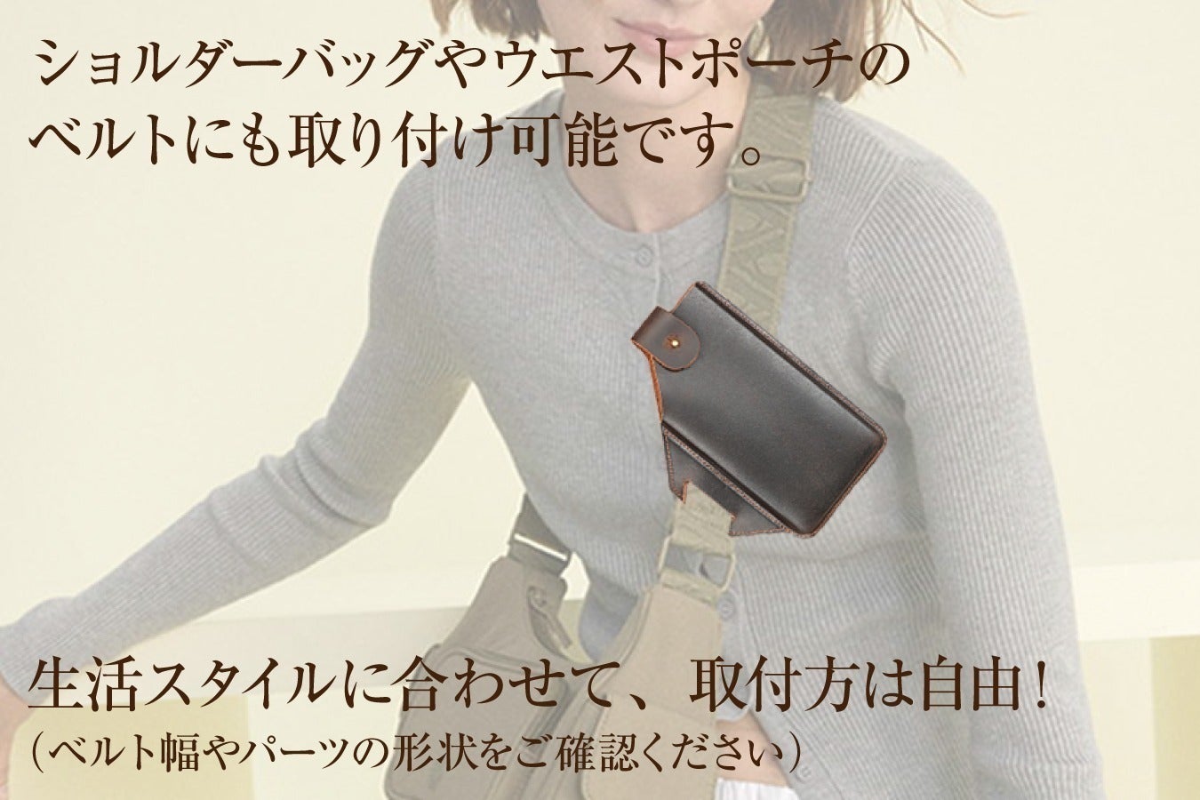 色はダークブラウンとブラウンの2色! ベルト色に合わせて色を選ぶのがポイント!