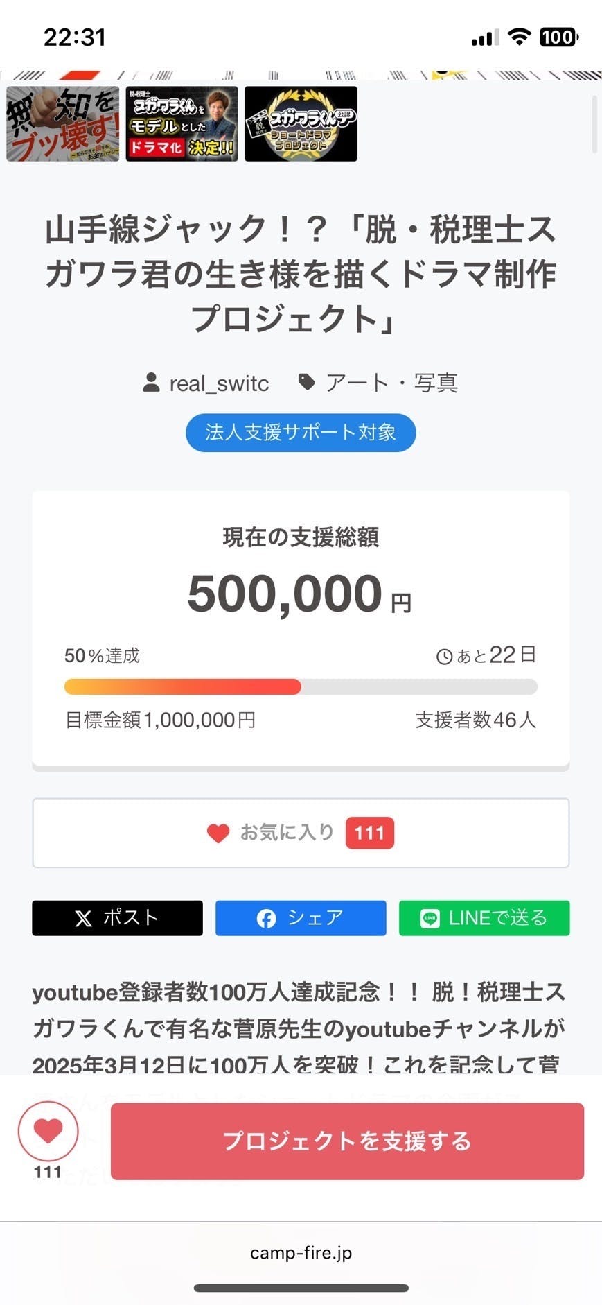 菅原さんのyoutubeコミュニティで本人がこのクラファンについて投稿してくれてます!