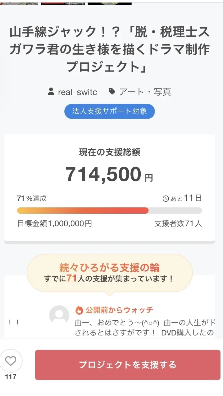 ついに残り11日を残して71%まで支援率が上がりました!