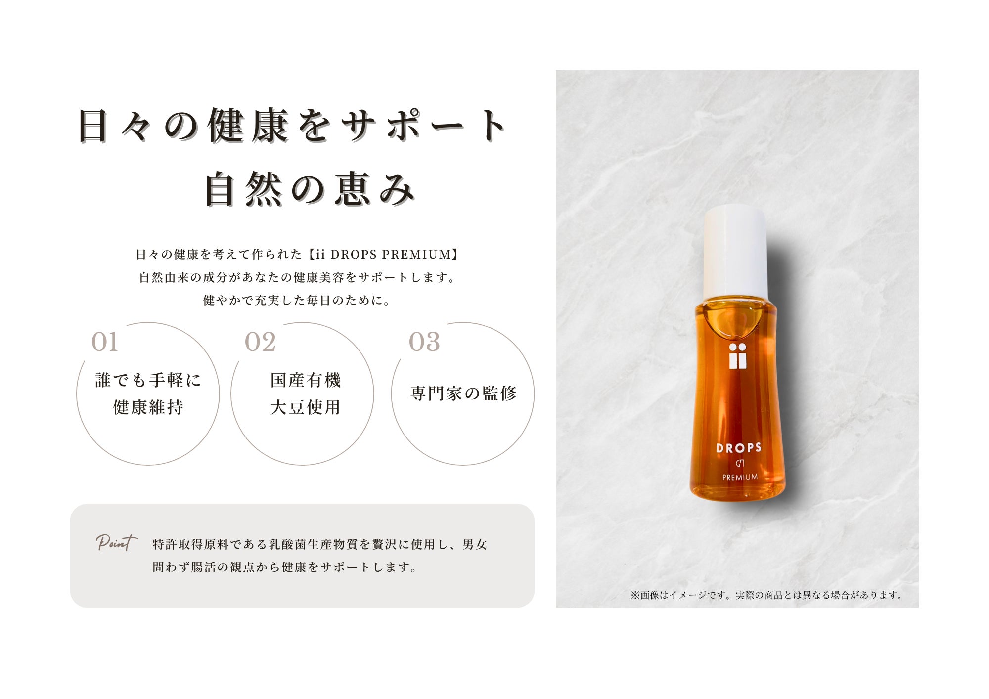 1本40mlの『ii DROPS PREMIUM』には、忙しい日常の中でも手軽に健康をサポートできる力が詰まっています。このプロジェクトを通じて、皆様の生活に小さな変化を生み出し、それが笑顔やエネルギーにつながる未来を想像すると、とてもワクワクします!