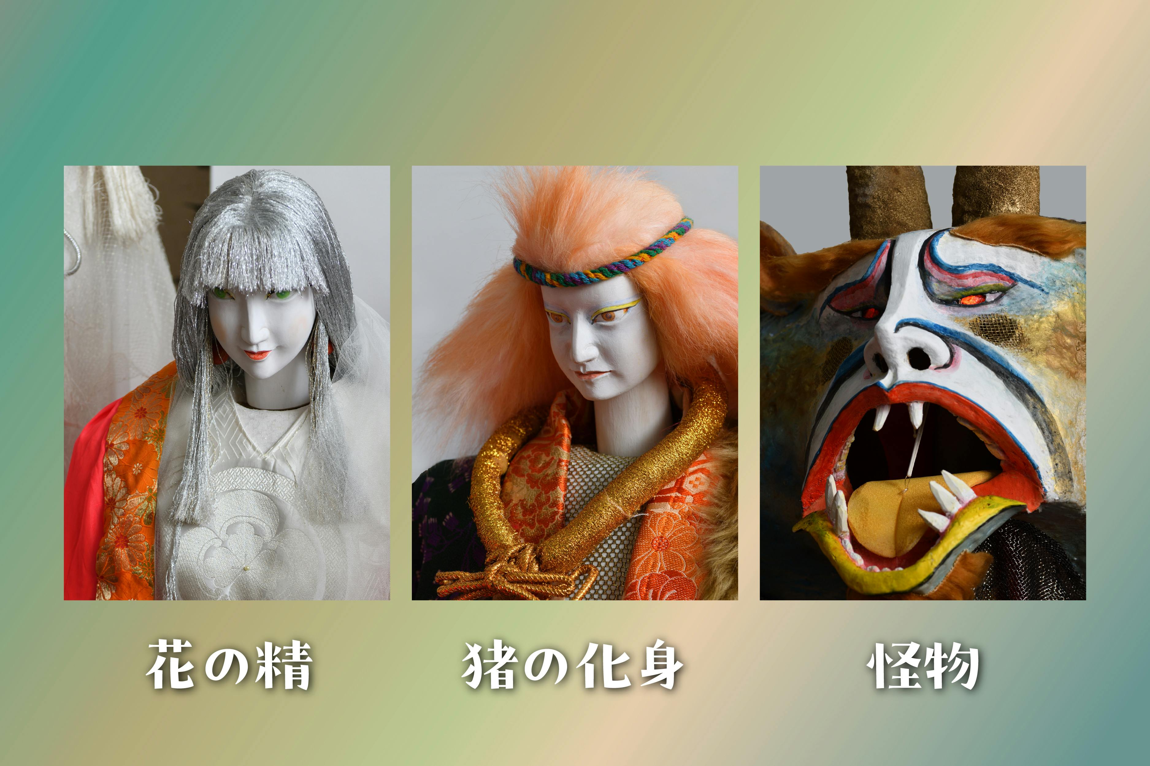 『花の精』にはクラシックバレエ、『猪の化身(青年)』にはバリ舞踊、『怪物』にはパントマイム——様式や流儀の異なるダンサー・パフォーマーが操り手を担当し、それぞれの独自の表現技法で人形を動かすことで、その性格や個性がより深く掘り下げられます。まるで命が吹き込まれたかのように、人形は本物の人間や生き物のような存在感を放ち、観る者を惹き込んでいくことでしょう。
