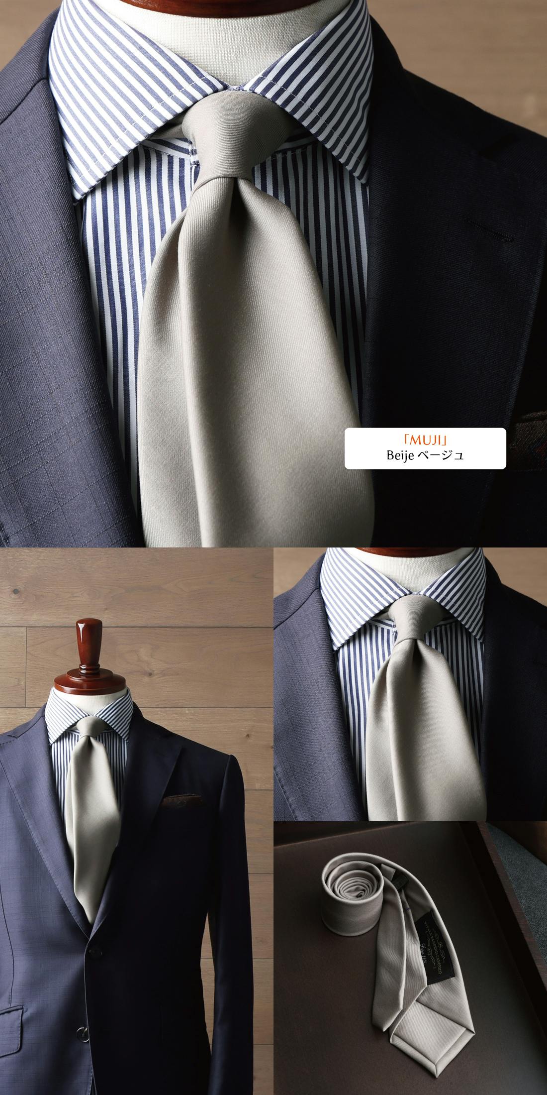 自然色(アースカラー)として人気のベージュ。柔らかな色合いのベージュネクタイが上品で優しさを感じさせてくれるコーディネイトに。