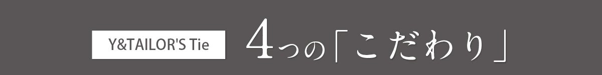 あっ!と驚かせるような主役級のネクタイを提供するのではなく、今あるスタンダードにちょっとした違いを加えること。すなわち、こだわりという「微差」をたくさん付け加えることで皆様のスーツやスタイルに、より馴染みやすいネクタイを創っていければと思っています。