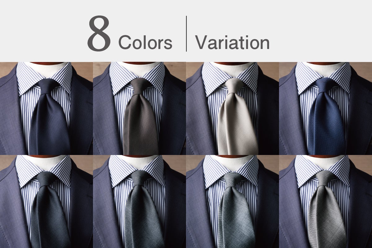 ネクタイの代表的な素材は「シルク」になりますが、今回は高級スーツ生地を使った「ウール」ネクタイになります。シルク生地では表現できないウール素材特有の優しい艶感があり、とても柔らかな締め心地になりました。 高級感のある光沢感で他とは差をつけたい時に大活躍な1本。