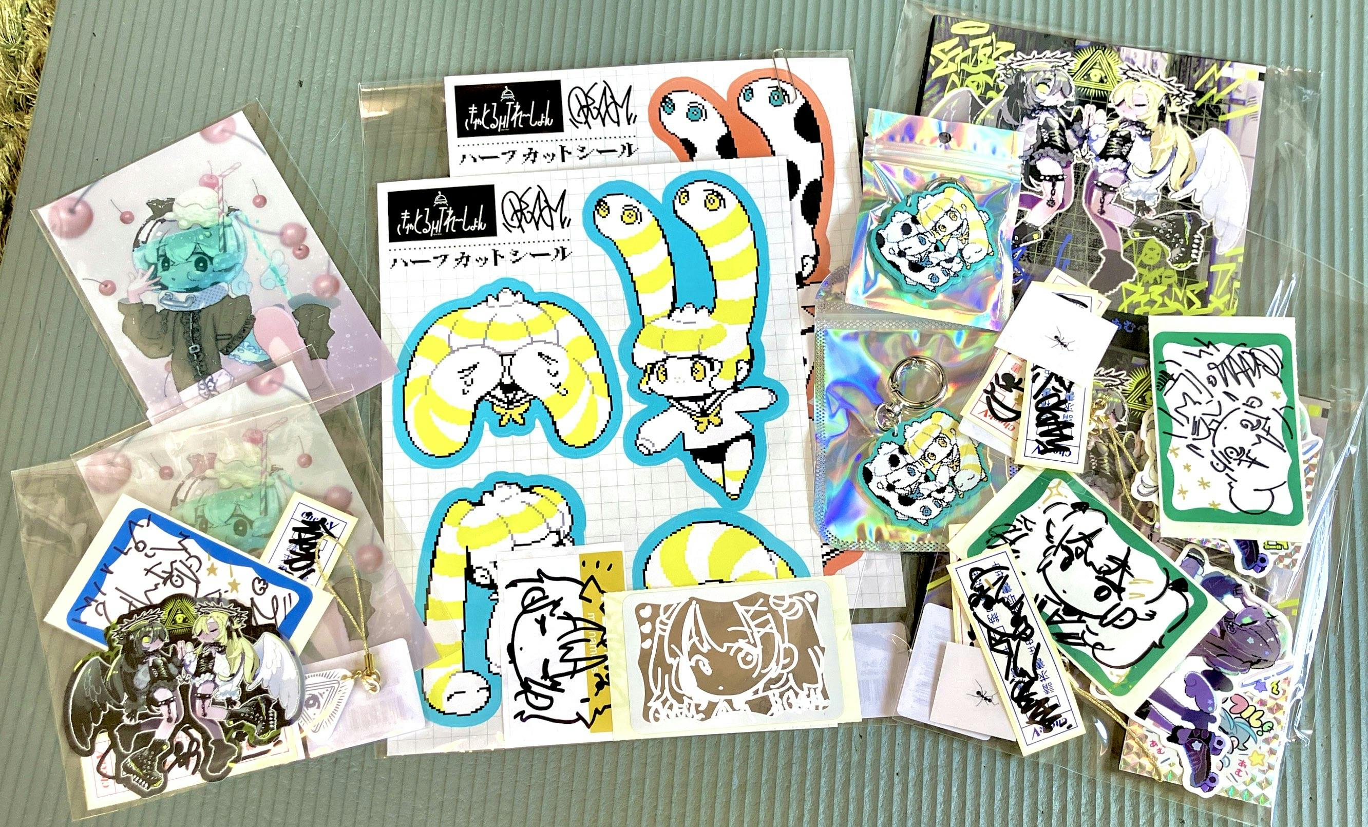 ・10000円 オープン記念グッズセット(ステッカー、キーホルダー、タオルハンカチ。以下同)