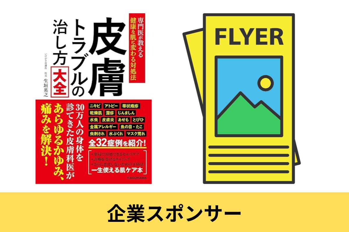 10社限定でいけがき皮膚科の生垣英之による書籍「皮膚トラブルの治し方大全」の企業スポンサーになれる権利です。 書籍発送時に同封するチラシに企業スポンサーとして企業名とQRコードを掲載させていただきます。 あなたの企業名をチラシでPRできます。