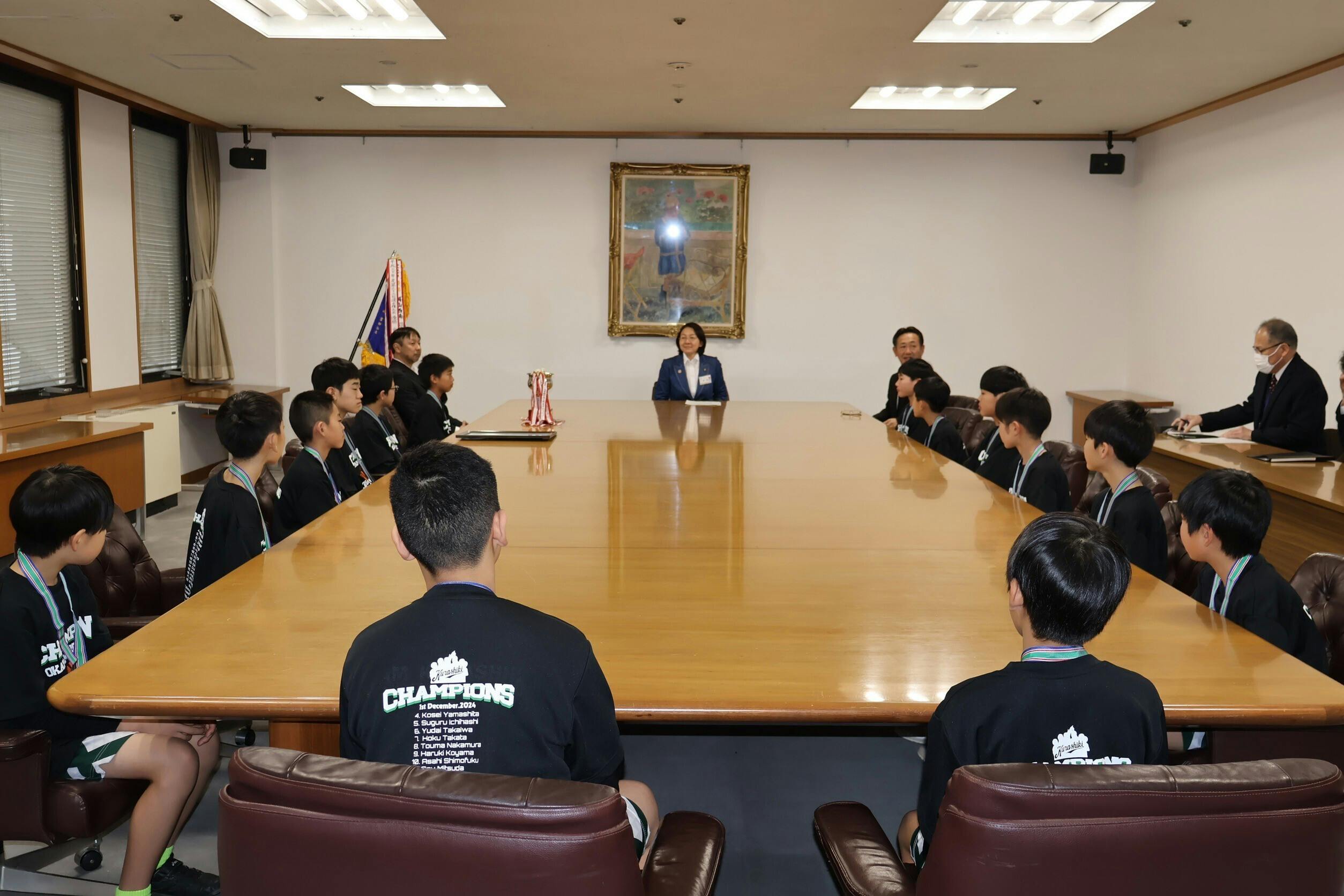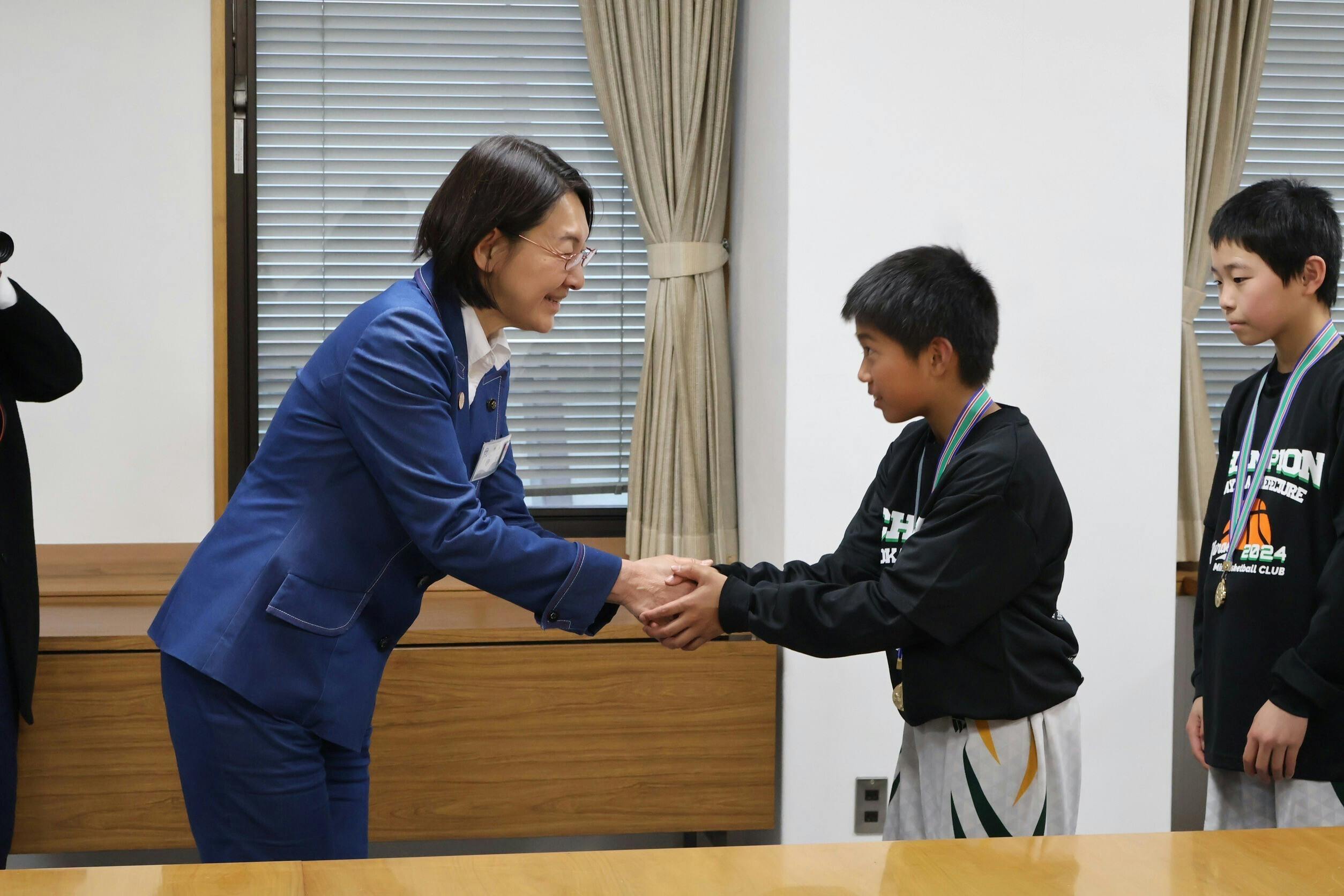 最後は市長と一緒に記念撮影をし、コーチ・選手・保護者一人一人と握手をしていただきました。