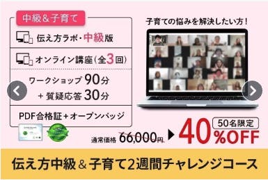 中級検定ではコミュニケーションの基本について学ぶ事ができますが、ワークショップに参加して、実際の子育てで性格タイプを活用することで、コミュニケーションのストレスを軽減と、子育ての問題を解決するためのスキルが身につけられるワークショップです。