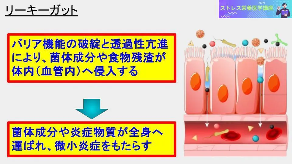 腸内微小炎症とは、文字通り、腸で生じる微小な炎症を意味し、その発生メカニズムとしてリーキーガットがあります。