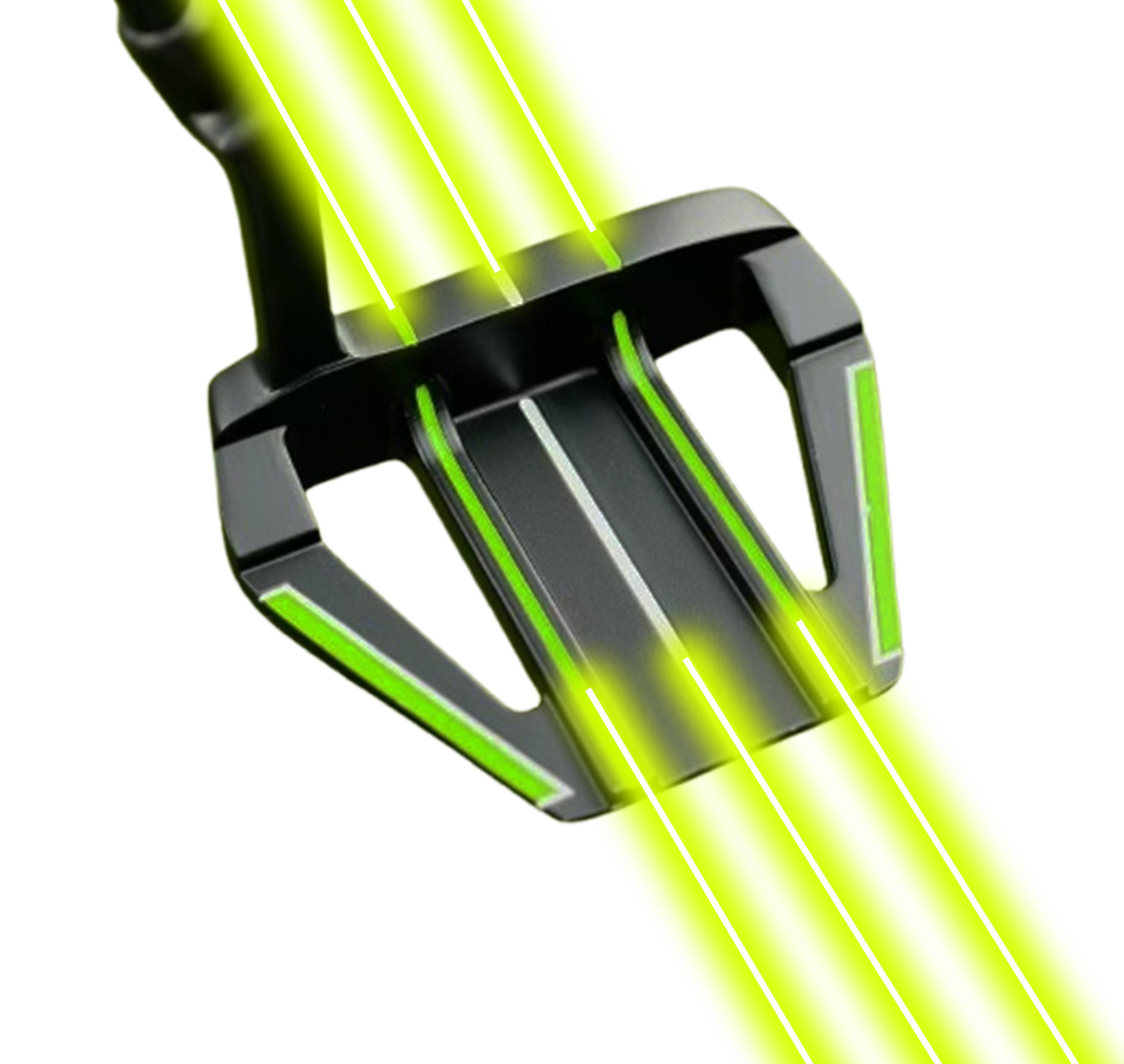 パターのネックとフェースに配置された6本のラインは、理想的なパッティング姿勢を導き出すためのガイドとなります。