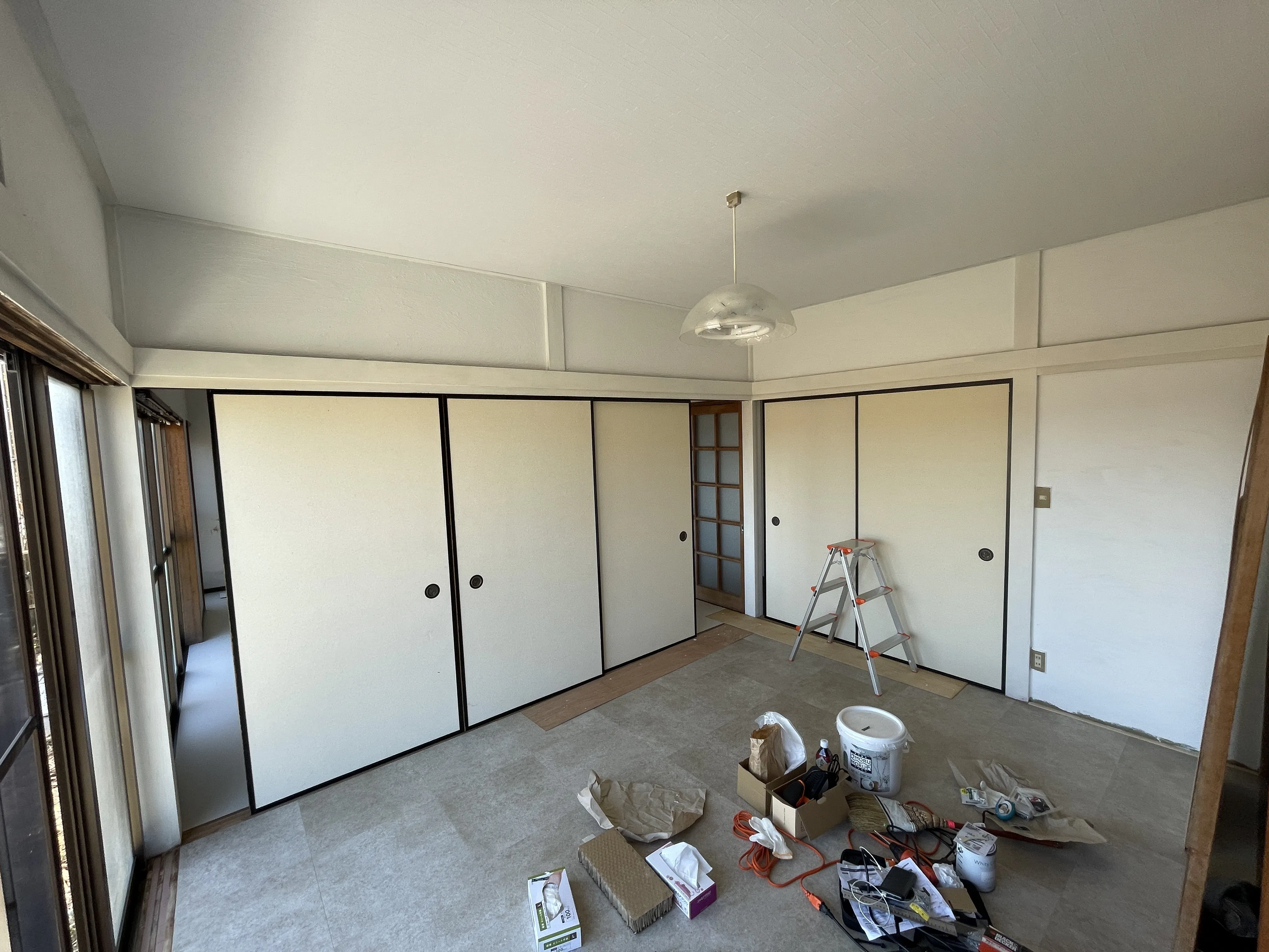 店主自らDIYで内装工事を進めています。