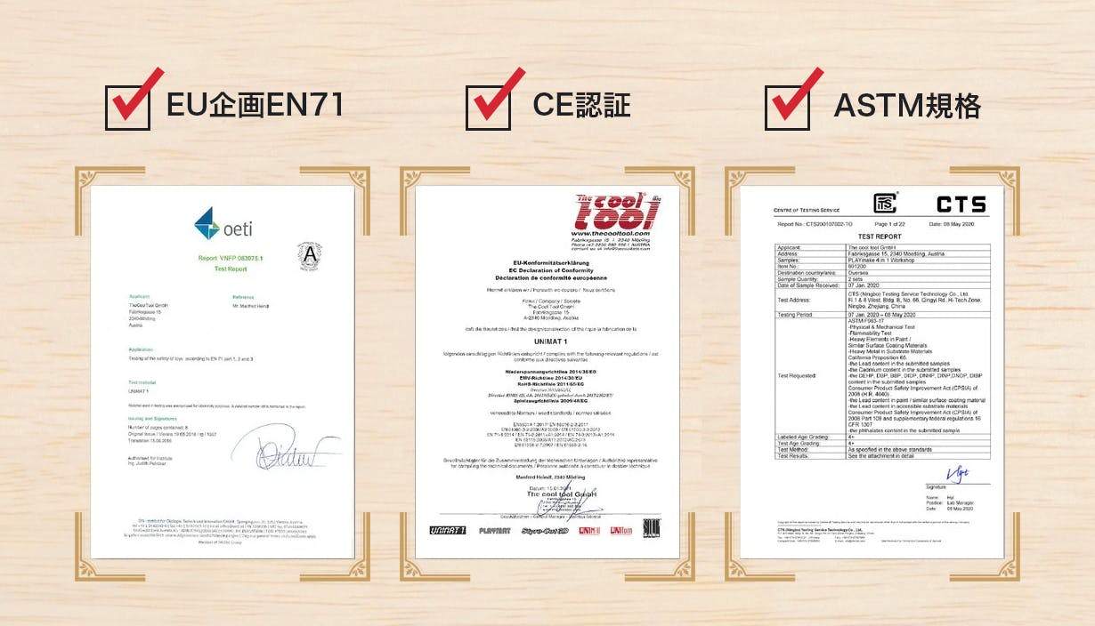 PLAYmakeは、オーストリア製の玩具であり、ヨーロッパの安全基準に基づいて製造されており、安全性に配慮された設計がされています。