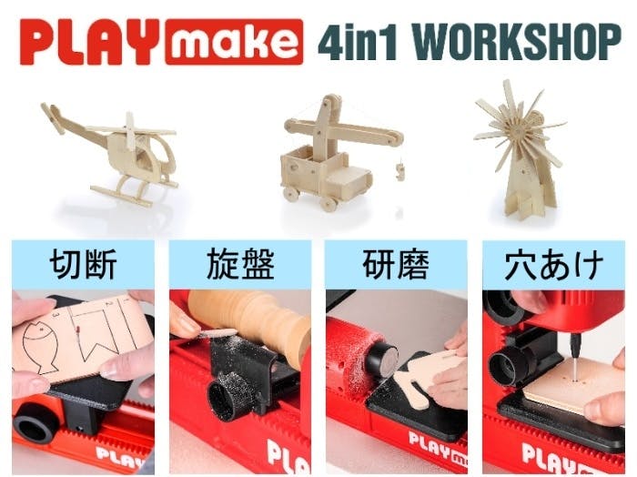 【PLAYmake】は、一台で【切断】【旋盤】【研磨】【穴あけ】といったものづくりの基礎体験ができ、形を作る楽しさを通じて、創造力や問題解決力を養える非常に優れたツールです。