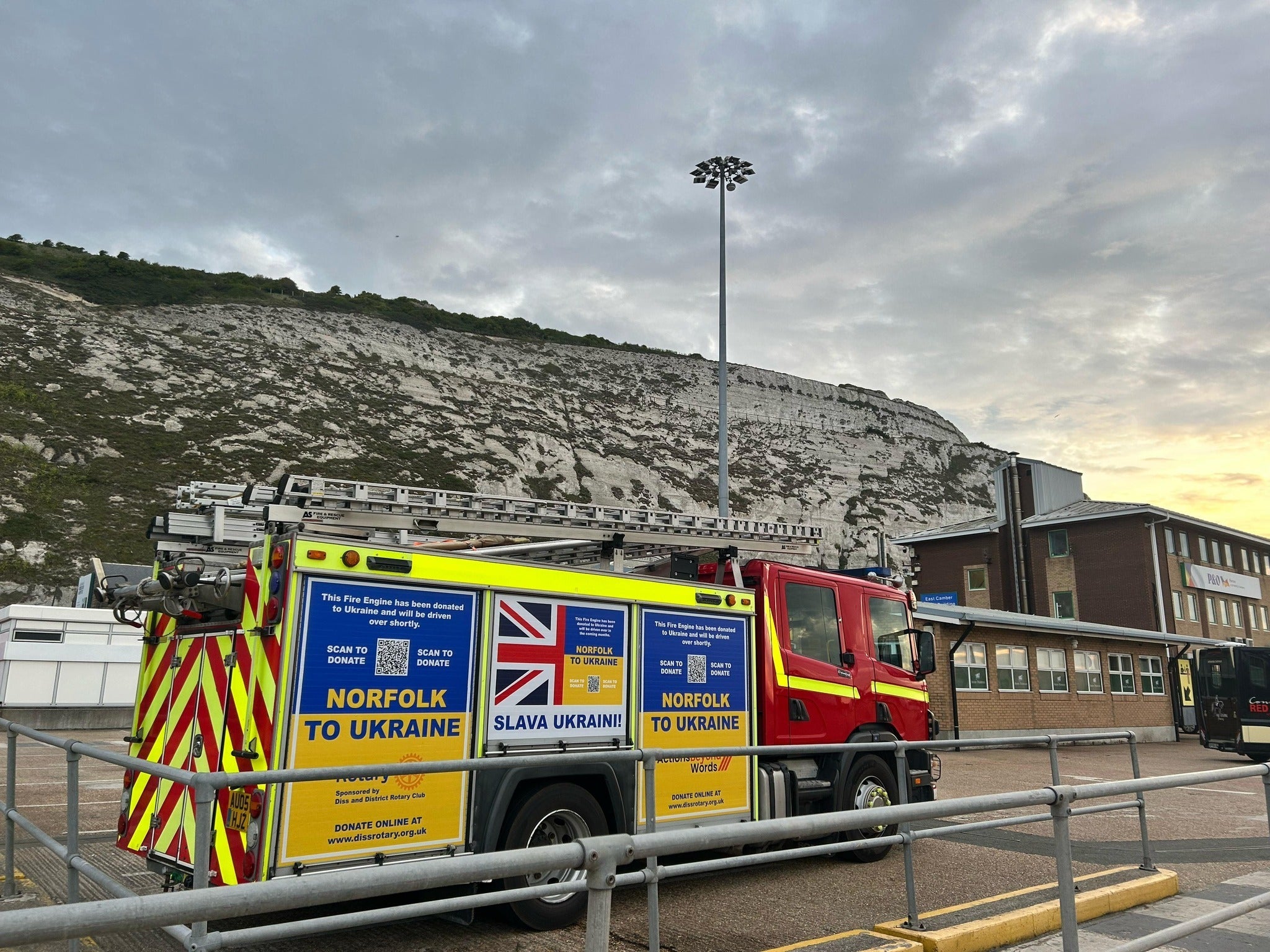 消防車は、ドーバー海峡をフェリーで越え、フランスから陸路でポーランドを目指し、メディカを経由してオデッサに入りました。