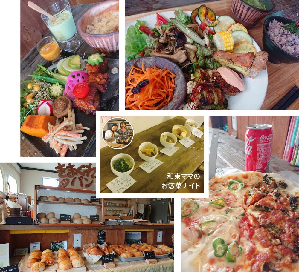 提供されるメニューは、ピザ、おばんざい、お惣菜、パン、コーヒー、ワンプレートランチ、米粉のお菓子、ビーガン料理、イカ系居酒屋料理、チャイ、スパイスカレー、タコス、ラーメン、などなど、多岐にわたります。