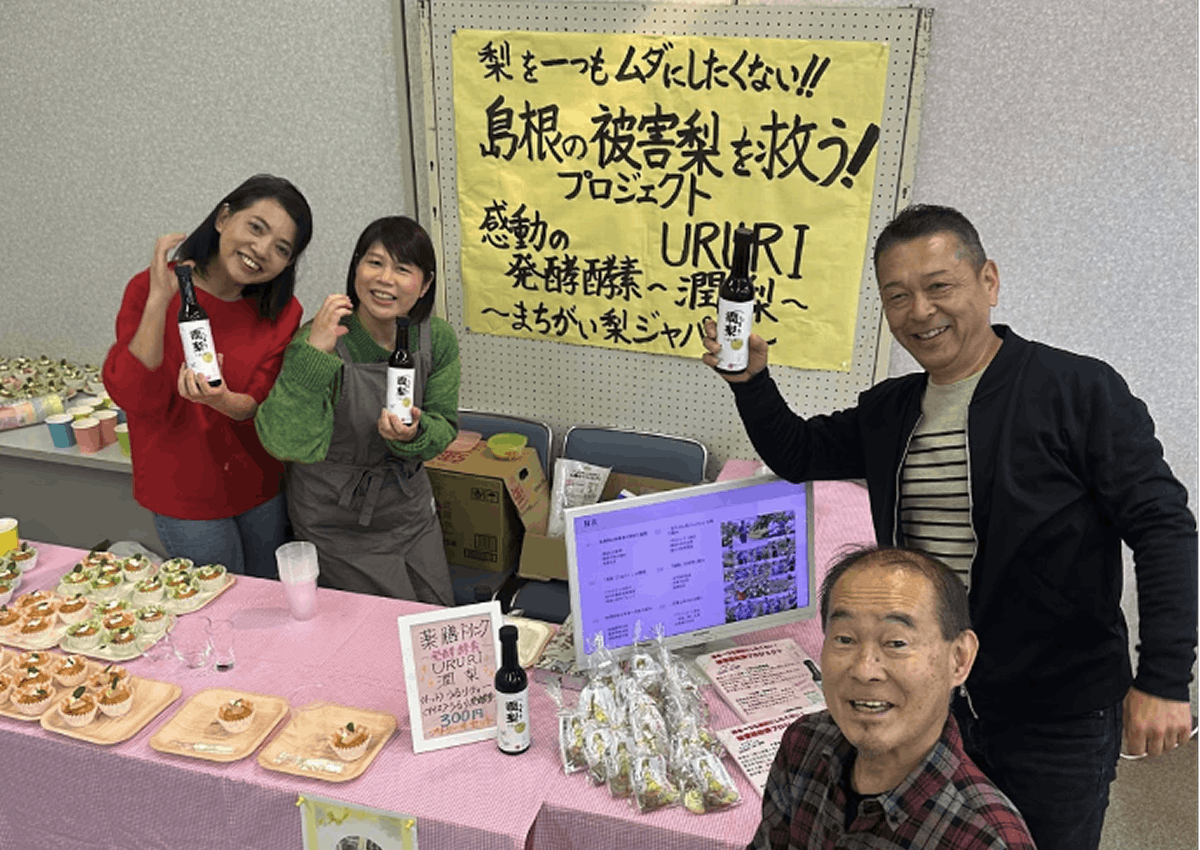 事業内容:「まちがい梨ジャパン」は、島根県安来市の梨農家とともに、規格外の梨を活用した発酵酵素原液の開発・販売を行っています。市場に出せない梨に新たな価値を見出し、食品ロス削減、持続可能な農業、地域活性化に貢献しています。