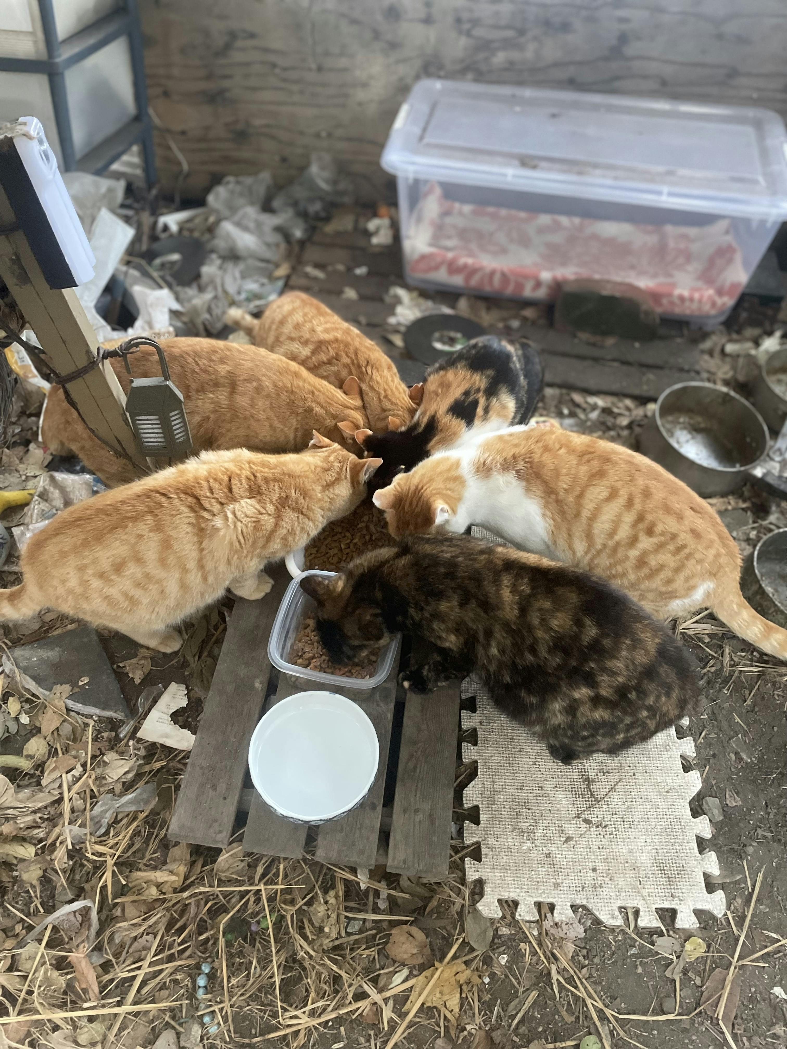 寒い時暑い時、雨が降ろうが風が吹こうが台風であろうが待っています。この子達は人から餌を貰わないと生きていけません。人間が増やしてしまったせいです。外の子は長生き出来ないかも知れませんが、一代限りの猫生全うさせてあげたいです。