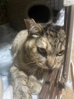 もう時間の問題かも知れません。原因はわかりません。歳もシニアだと思います。メスで耳カットされてるようですが避妊手術済か未手術かもわかりません。