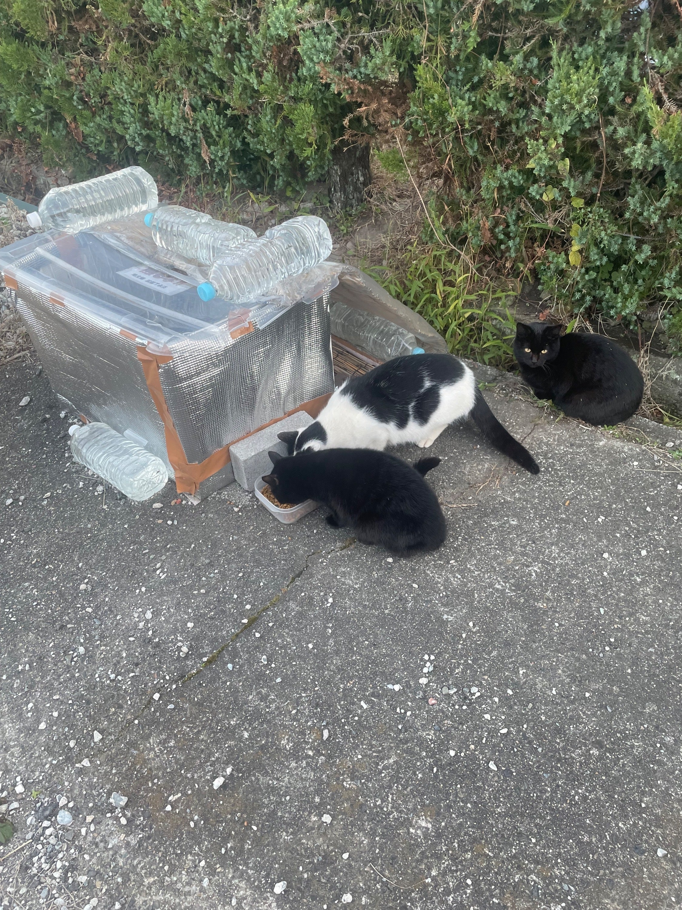 毎日仕事に行く前と帰りに劣悪な場所2ヶ所には餌やりに寄っています。餌やり場を改善、寝床も設置しました。家の庭、付近は朝起きてから、夜は仕事から帰ってからあげています。