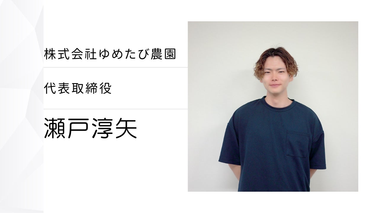 はじめまして。株式会社ゆめたび農園 代表取締役の瀬戸淳矢です。