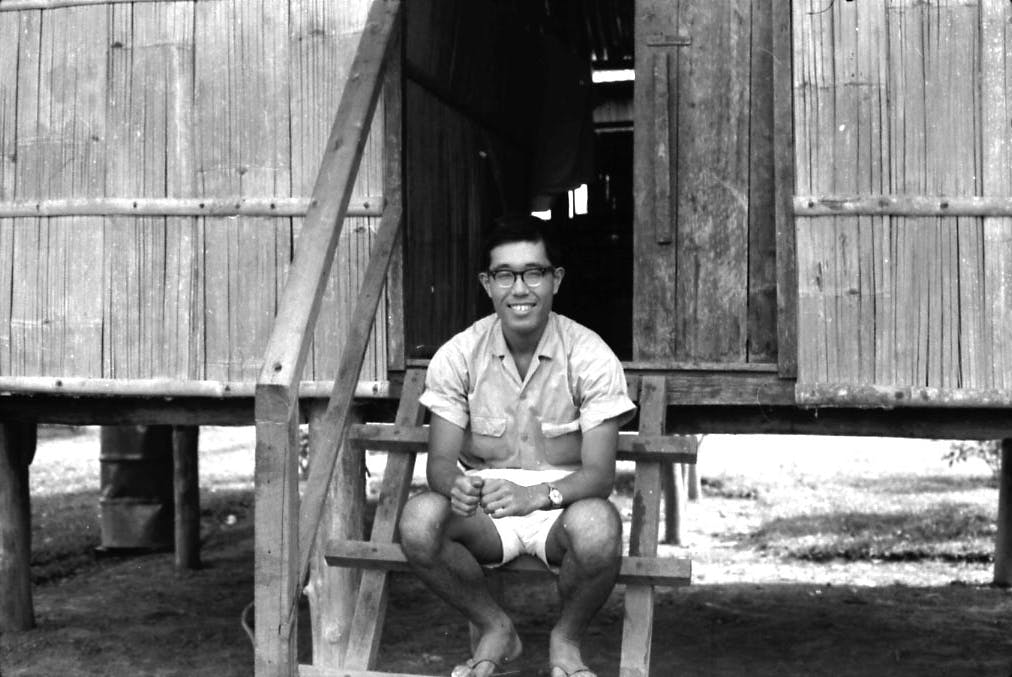 マレーシア・サバ州に派遣された草野忠正さん(農業普及/1965年度1次隊)。待ち受けていたのは、電気も水道もない厳しい生活。河での沐浴が習慣となり、灯は石油ランプ、飲料水は雨水を利用したものだったとか…。