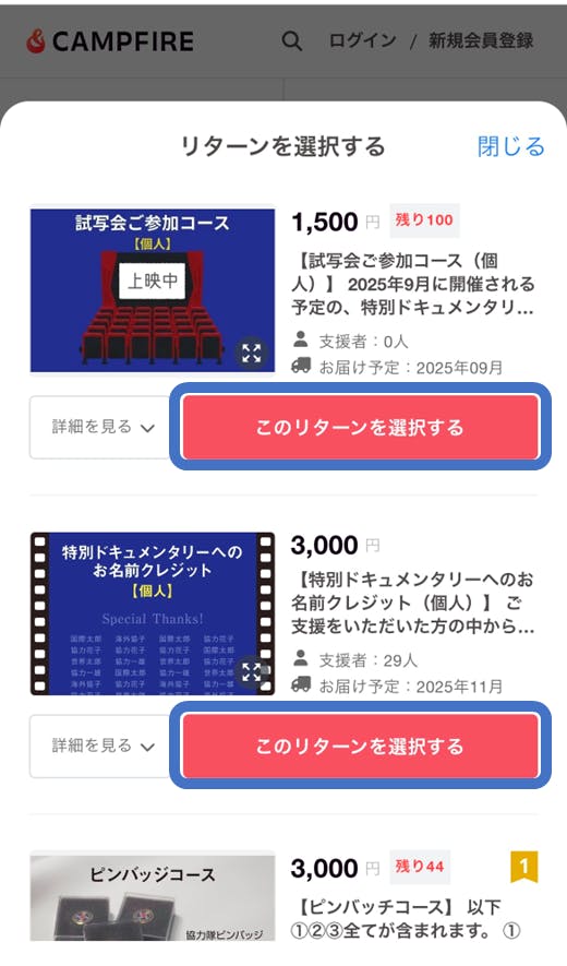 ③希望されるリターンを選択