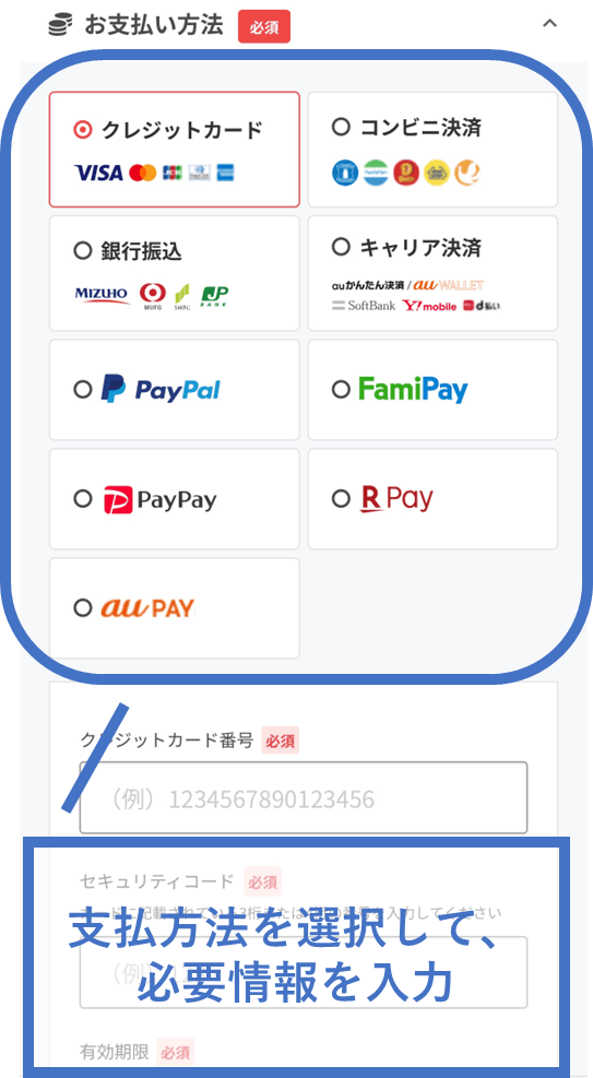 ⑦お支払い方法やその他必須項目を選択・入力し、「確認画面へ」を選択