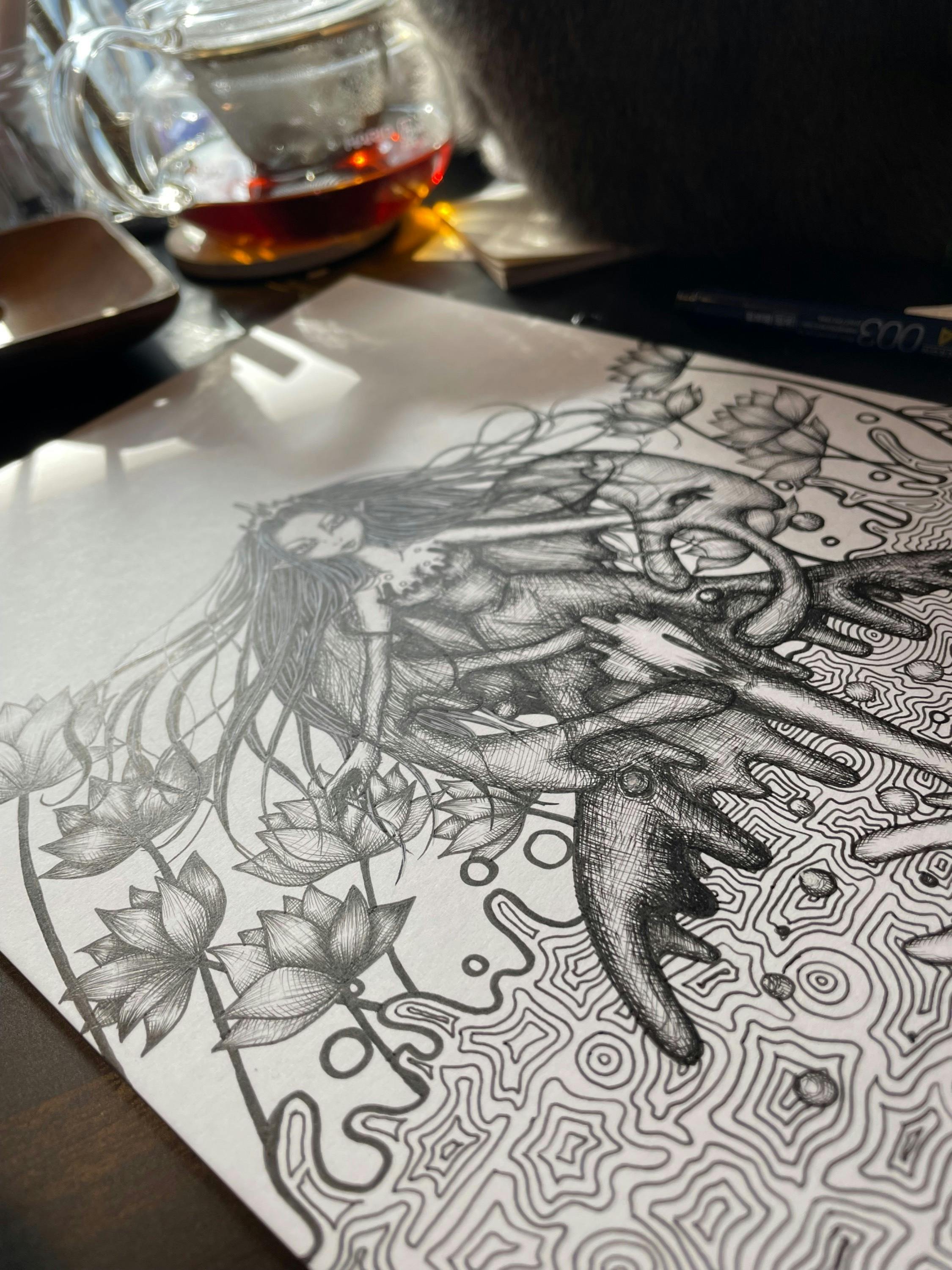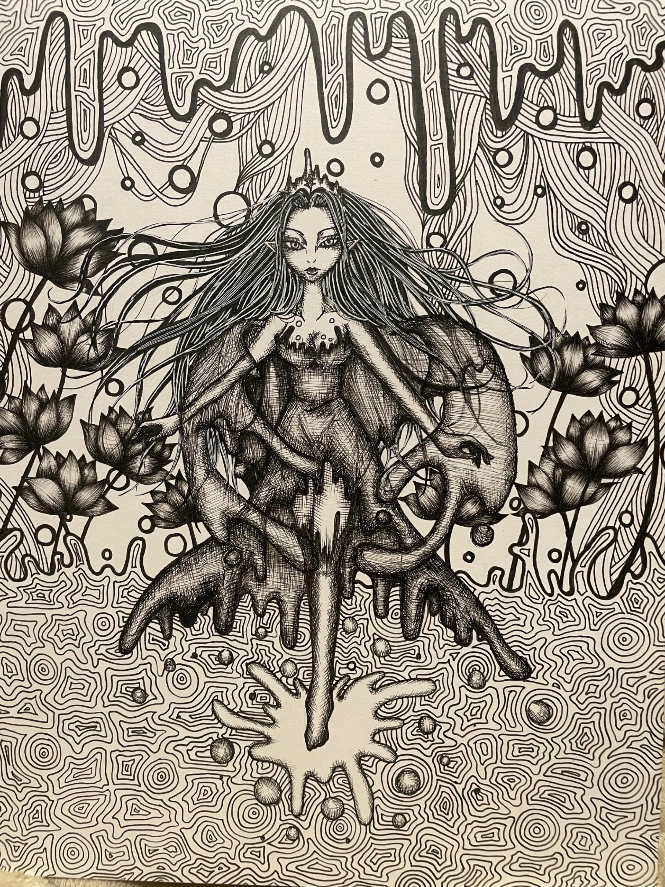 その後、突然の身体の持病が発覚し機能性障害により肢体不自由になり、一般企業での就職も難しくなりました。全てに絶望していた時、母に背中を押され本来の、昔からの夢である画家、表現者の道に進み10年前から独学で絵を描きながら、夢の中で出会った独特の世界を表現する方法を模索してきました。