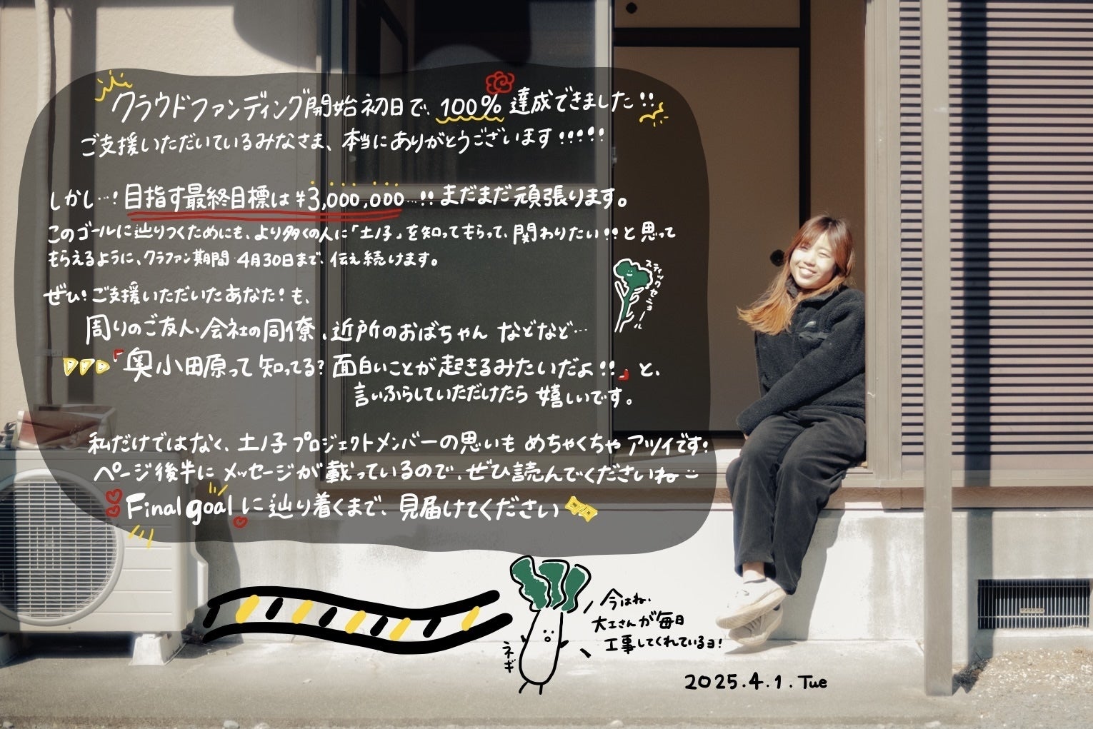 このゴールに辿りつくためにも、より多くの人に「土ノ子」を知ってもらって、関わりたい!と思ってもらえるように、クラファン期間、4月30日まで伝え続けます。