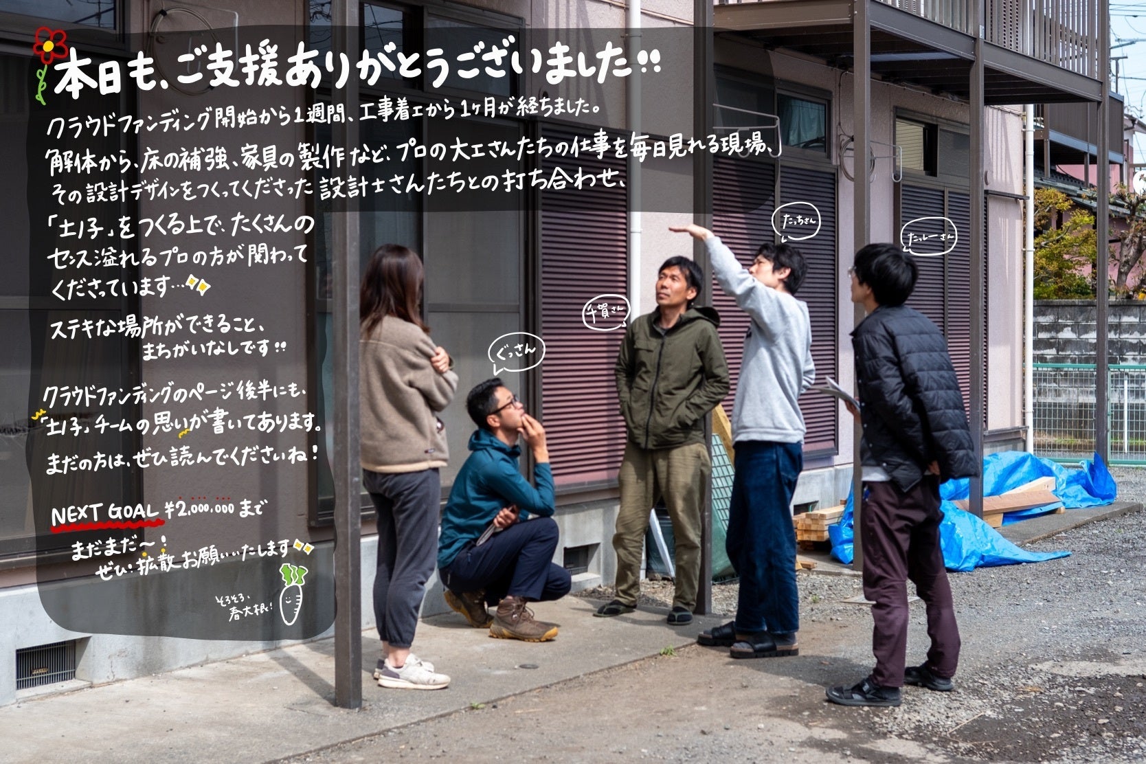クラウドファンディング開始から1週間、土ノ子の工事が着工してから1か月が経ちました。