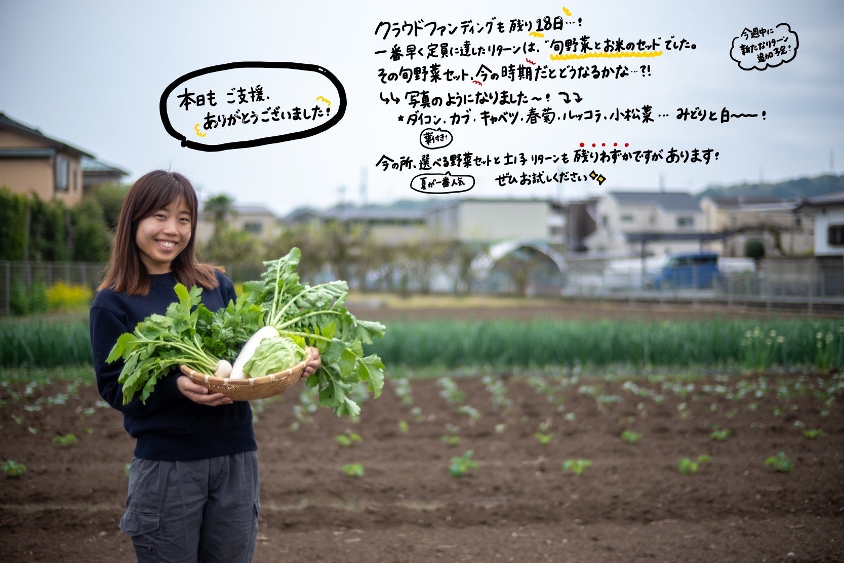 一番早く定員に達したリターンは旬野菜と米セットでした。