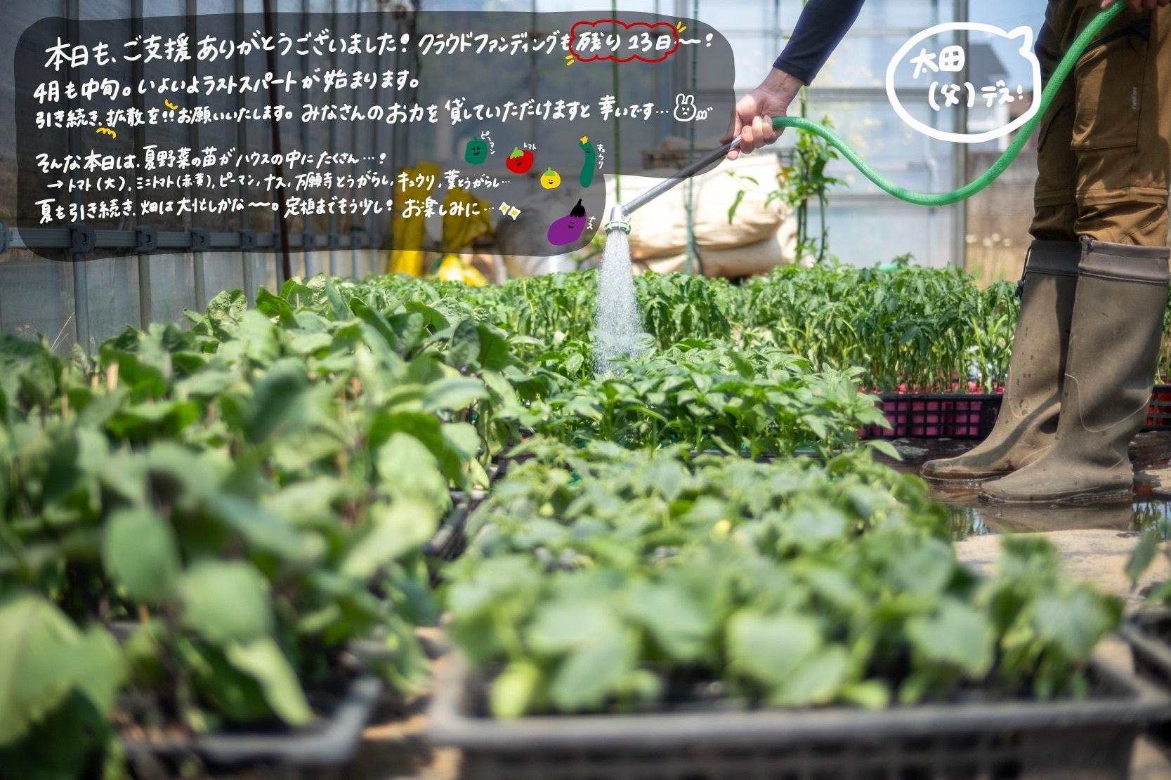 そんな本日は、夏野菜の苗がハウスの中にたくさん…!