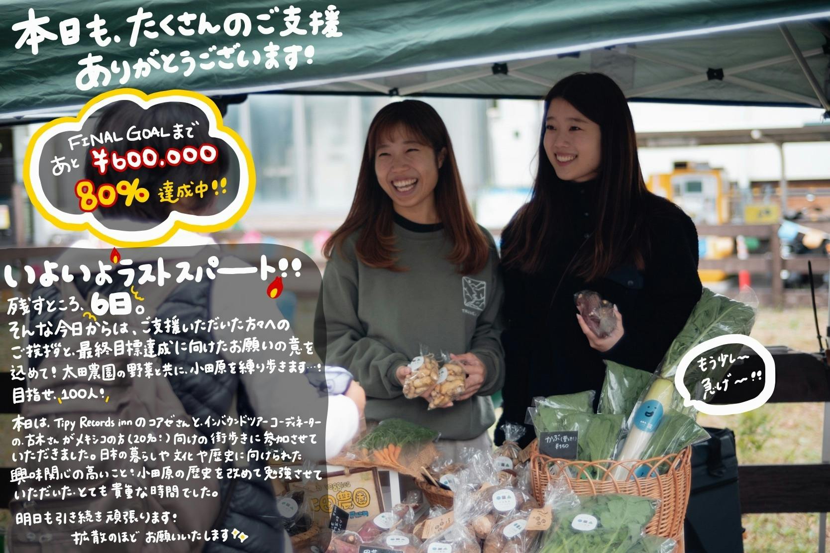 ぜひ、こちらのリンクを拡散していただけたら嬉しいです!https://camp-fire.jp/projects/828268/view?list=projects_fresh↡↡↡最終目標、80%達成中!残り5日。あと、¥540,000…!絶賛ラストスパート中です。本日も、小田原駅周辺でご支援のお礼を兼ねて挨拶へ。間引きにんじんとルッコラをお供に行ってきました。このにんじん、今は極小ですが葉っぱは柔らかくてとても食べやすい!ハーブのような香りです。おすすめの食べ方は、かき揚げ(新玉との相性が最高)、サラダに、ジェノベーゼソースに、野菜のふりかけに、以外と万能。間引きにんじんは、昔は捨てられることが普通でした。でも食べてみたら葉は食べやすいし、にんじんは甘い、ワインとの相性も良い!大人な味ですが、一度知ったらまた食べたくなるかも…。