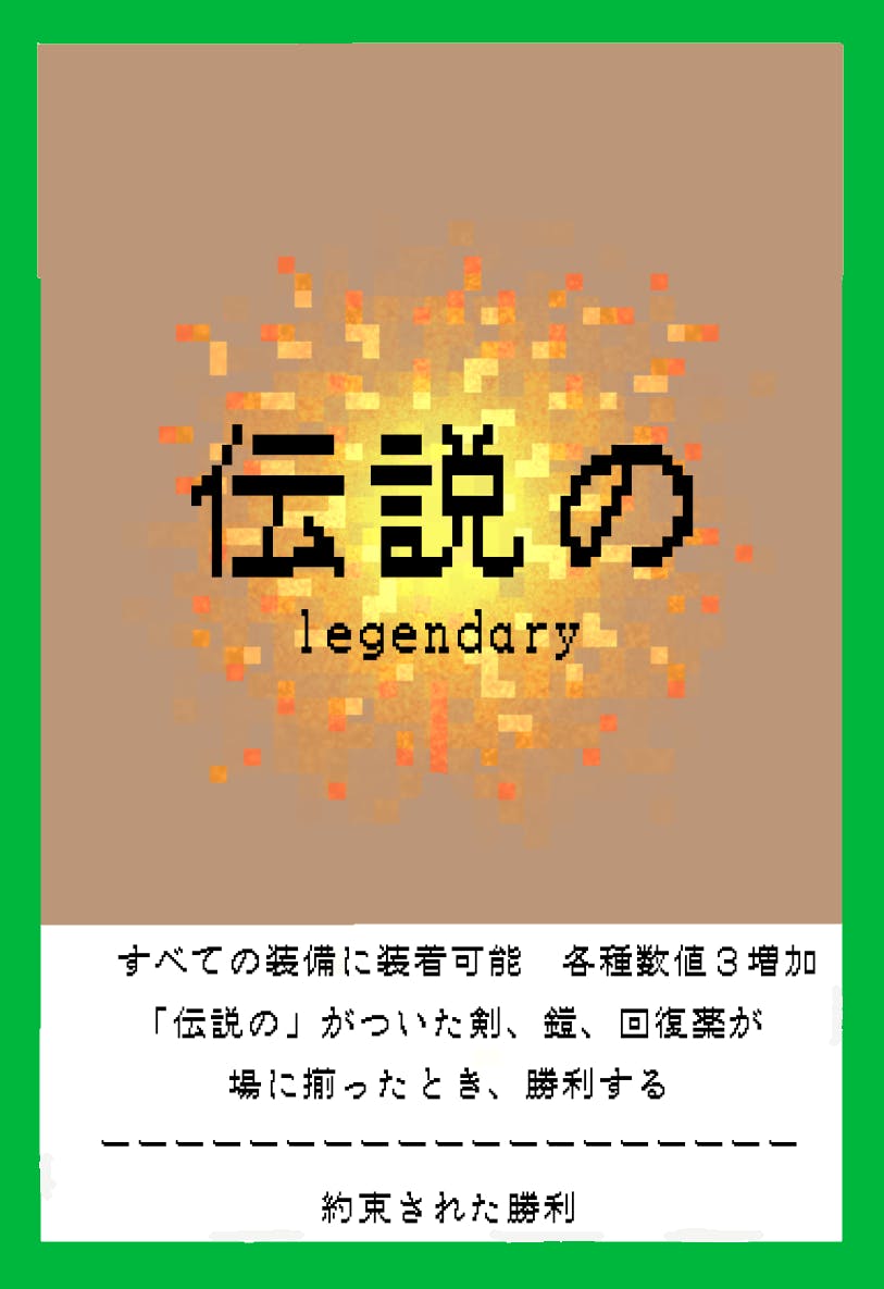 勝負に勝つ方法は強力な攻撃で相手を倒すだけではありません!最強のアトリワード「伝説の」が付けられた剣、鎧、回復薬を場に揃えることができたら、対戦相手はその神々しさに思わず跪いて降参するでしょう。