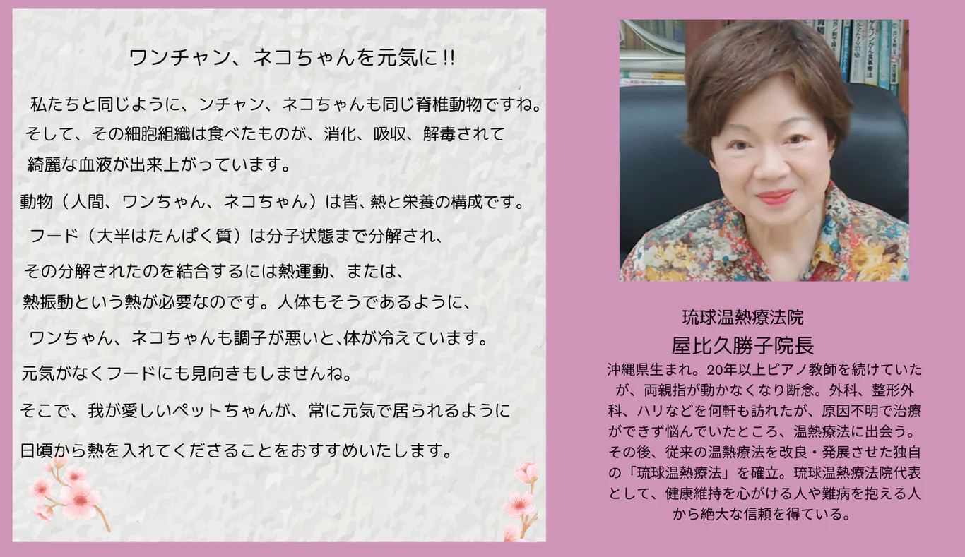 ▼琉球温熱療法院 屋比久勝子院長より