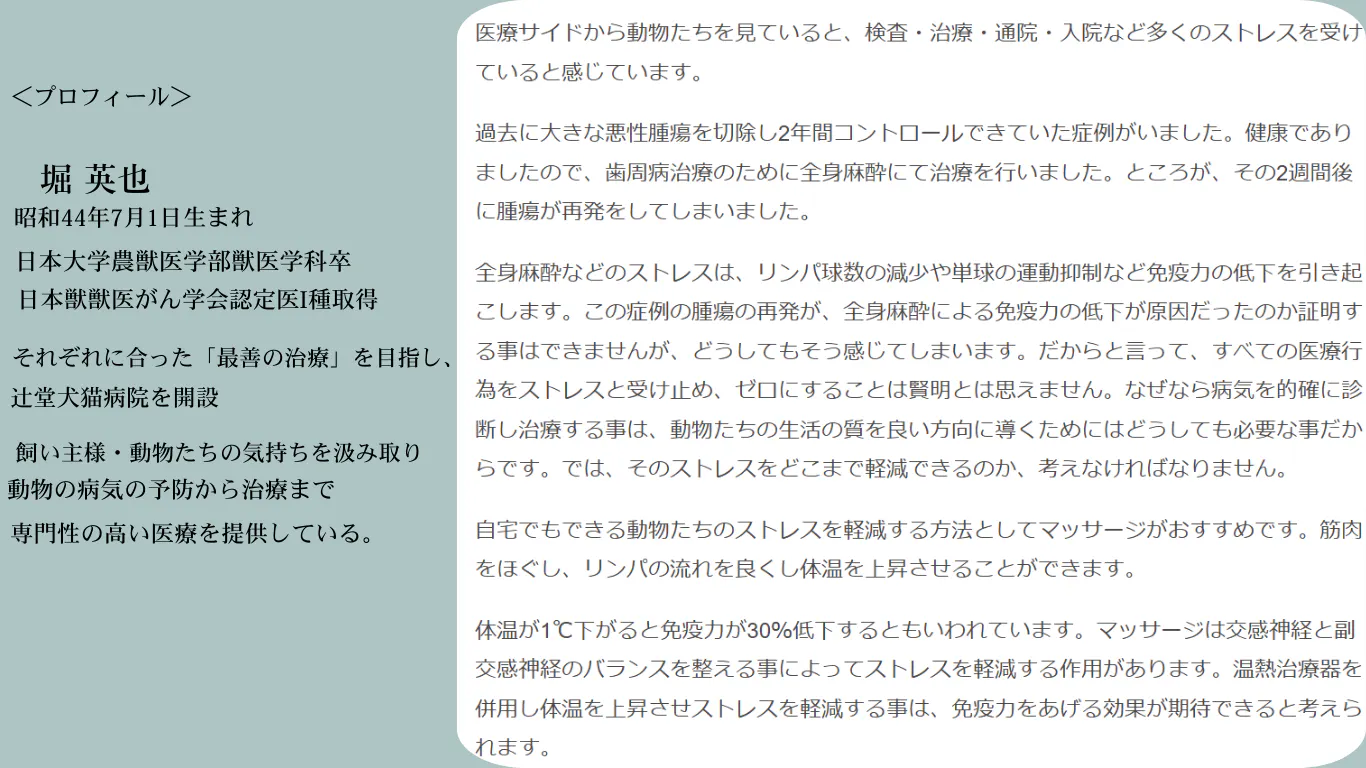 ▼辻堂犬猫病院 堀英也院長より