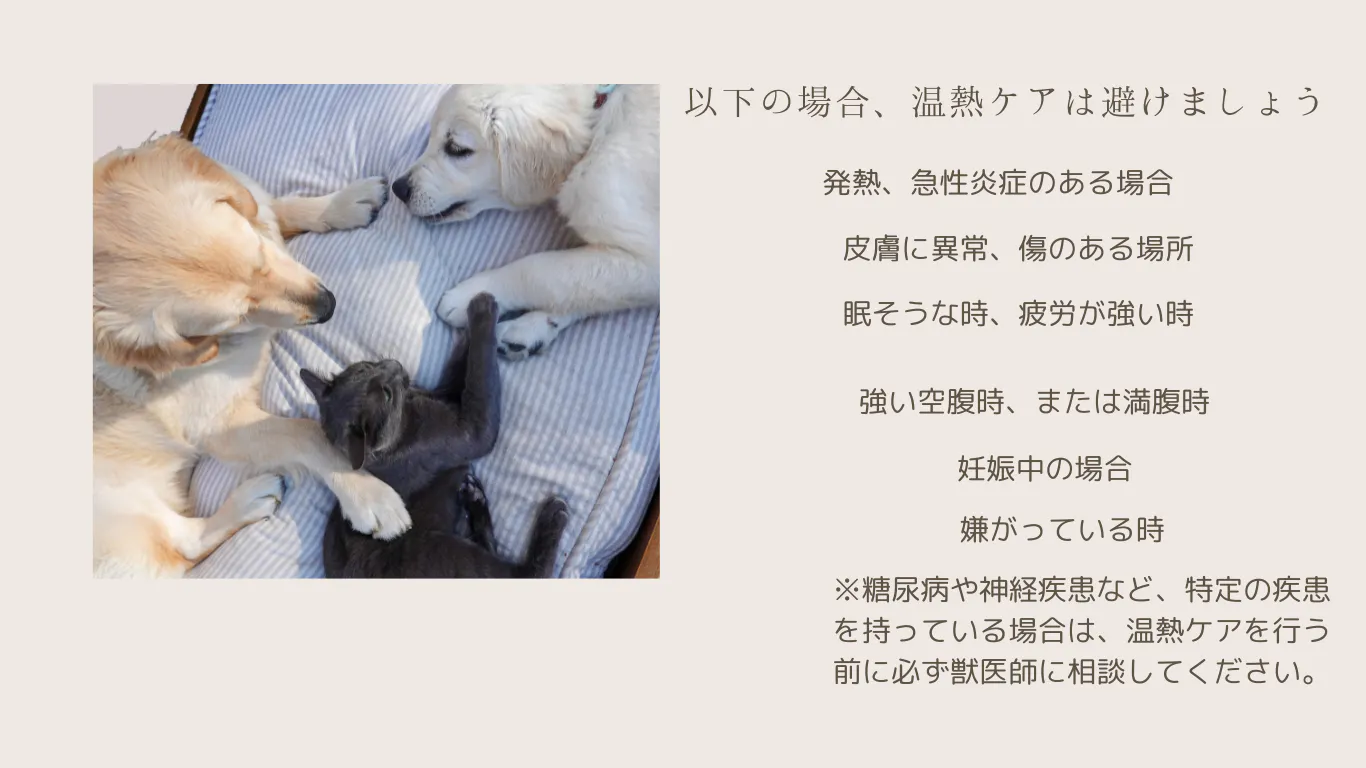 なにより、温熱療法を受けている時のワンちゃん、ネコちゃんはとても気持ちよさそうです。その姿を見ることは、飼い主にとっても癒しのひとときとなるでしょう。