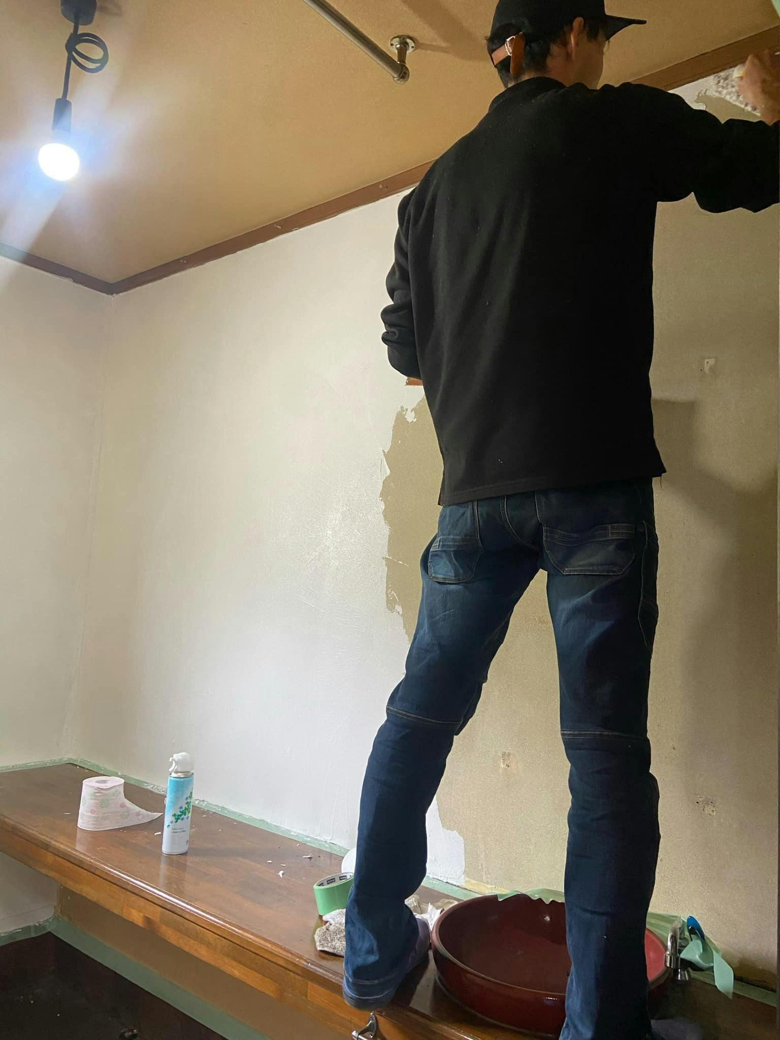 今日はレストランの内壁の漆喰塗り2日目です!