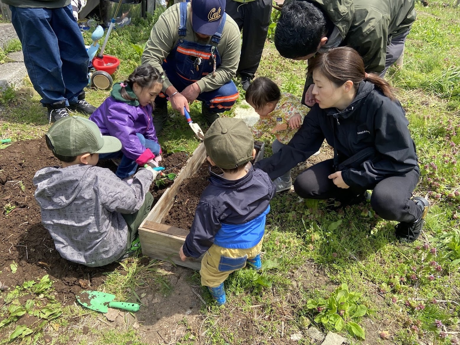 こんばんは。今日はこすもす公園の中に「みんなの野菜畑」を作る一歩として、野菜の苗植えDAYでした!市内のご家族に参加してもらい20名程で開催しました。