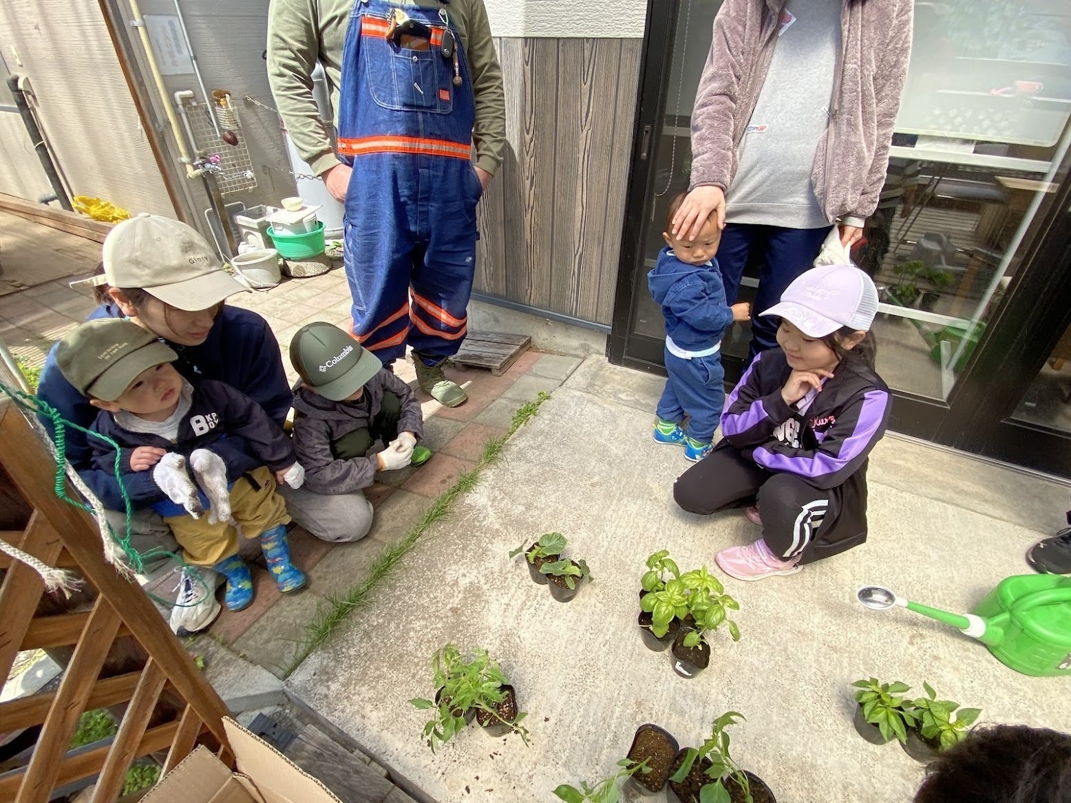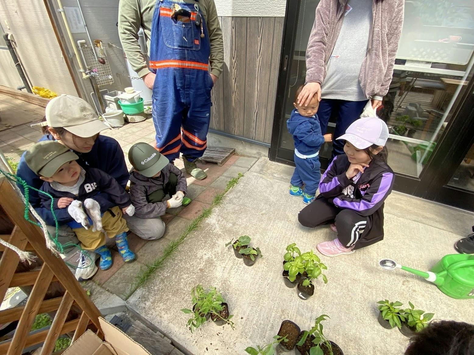 野菜の苗あてクイズ中。みんなで何の野菜かな〜?と考えてます。