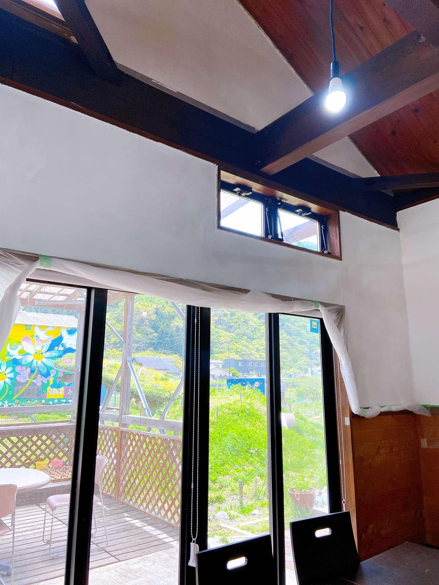 レストランの壁面の漆喰塗りや、こすもす公園内の畑コーナーの整備を少しずつ進めています。