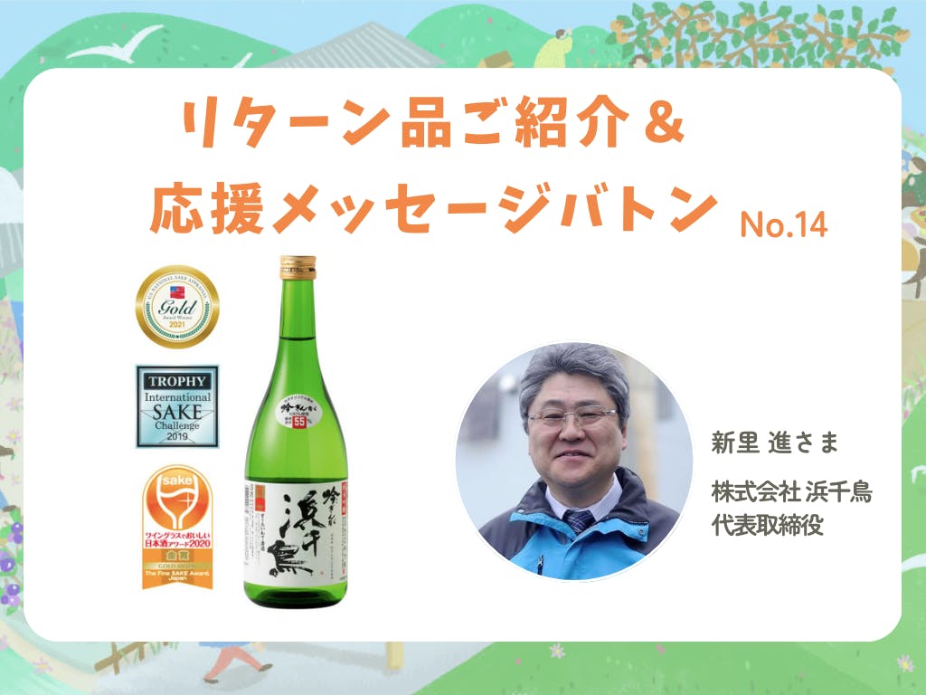 釜石に蔵を構える浜千鳥は、大正12年創業の歴史ある酒蔵です。地酒として釜石の人々に親しまれ、「自然とひとつになった酒造り」を基本姿勢に、豊かな自然と造り手の方々の温かい想いが込められたお酒です。私たちがクラウドファンディングのリターン品としてオリジナルラベル企画のご相談をした際も、趣旨に賛同いただきとても気さくに対応していただきました。